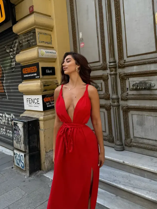 - Duboki dekolte sprijeda koji naglašava siluetu