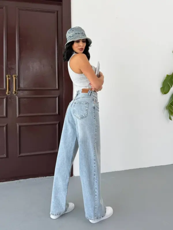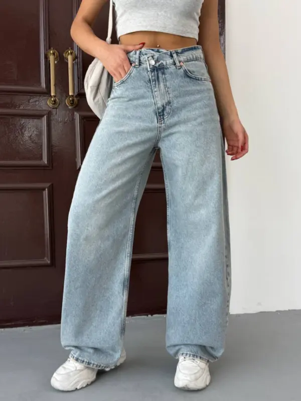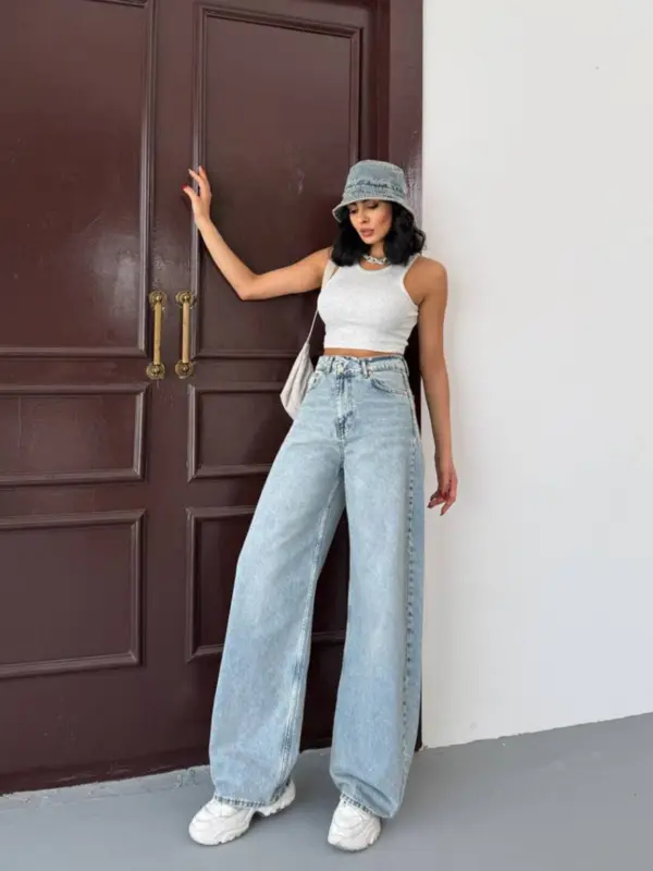🔹 Kroj: Široke nogavice, visok struk