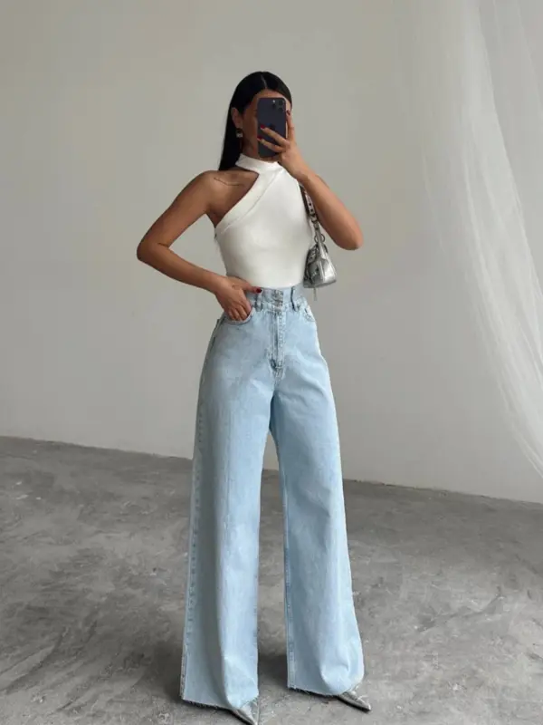 Ovaj model hlača ističe se visokim strukom i trendovskim širokim nogavicama, savršenim za svakodnevne kombinacije i neformalne izlaske. Donji rub ostavljen u neobrađenom stilu daje dozu urbanog karaktera i autentičnog dojma.