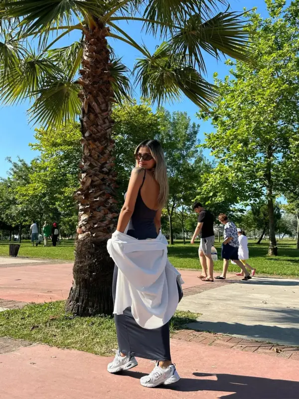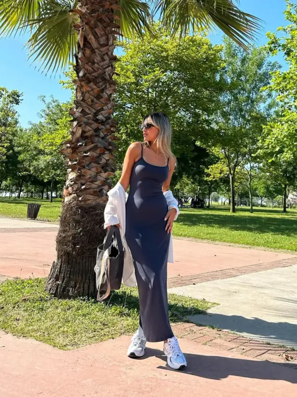 Ova elastična maxi haljina ističe figuru svojom uskom siluetom, dok otvorena leđa dodaju dozu senzualnosti. Napravljena od mekane i rastezljive tkanine, pruža maksimalnu udobnost i savršeno se prilagođava tijelu.