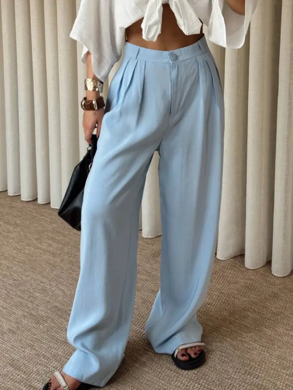 Ove palazzo hlače izrađene su od izuzetno lagane i prozračne tkanine, savršene za tople dane i opuštene kombinacije. Visoki struk sa faltama vizuelno izdužuje siluetu i pruža dodatnu udobnost, dok lepršavi nogavice omogućavaju slobodu pokreta i elegantan pad materijala. Idealne su za svakodnevne outfite, letnje šetnje, putovanja ili kombinacije za posao.