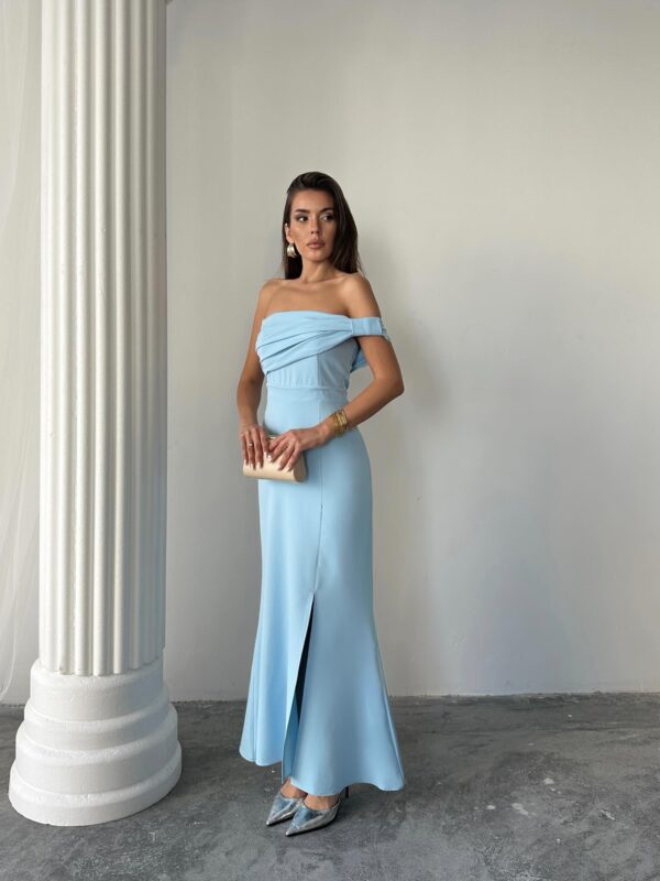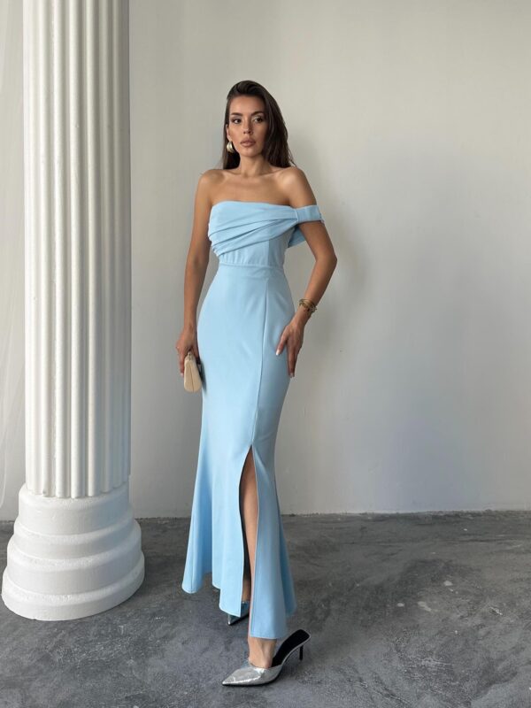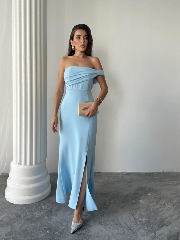 Ova neodoljiva haljina unosi dašak sofisticirane originalnosti i modernog šika u garderobu. Inspirirana fluidnošću i asimetrijom, savršeno će pristajati na sve svečane i polusvečane prilike.