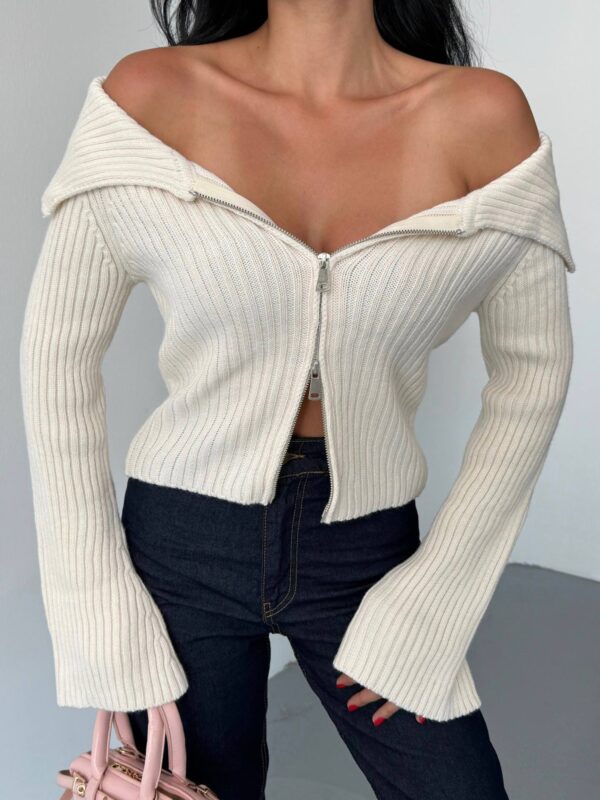 ✨ Rebrasti off-shoulder džemper sa zipom – svestran & seksi ✨