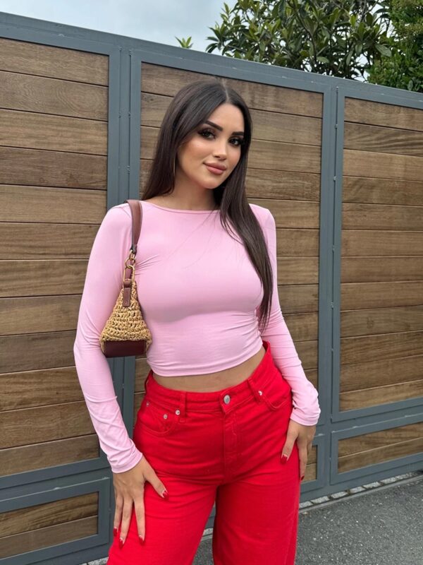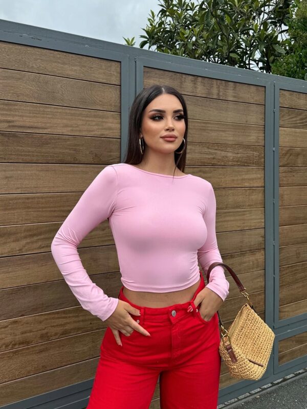 Rastezljiva kraća majica sa izrezanim leđima.
