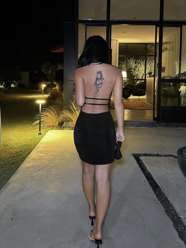 Mini udobna haljina sa elastinom i otvorenim leđima. Haljina nije podstavljena, samim tim je providna, preporučujemo da ispod nosite podsuknju.