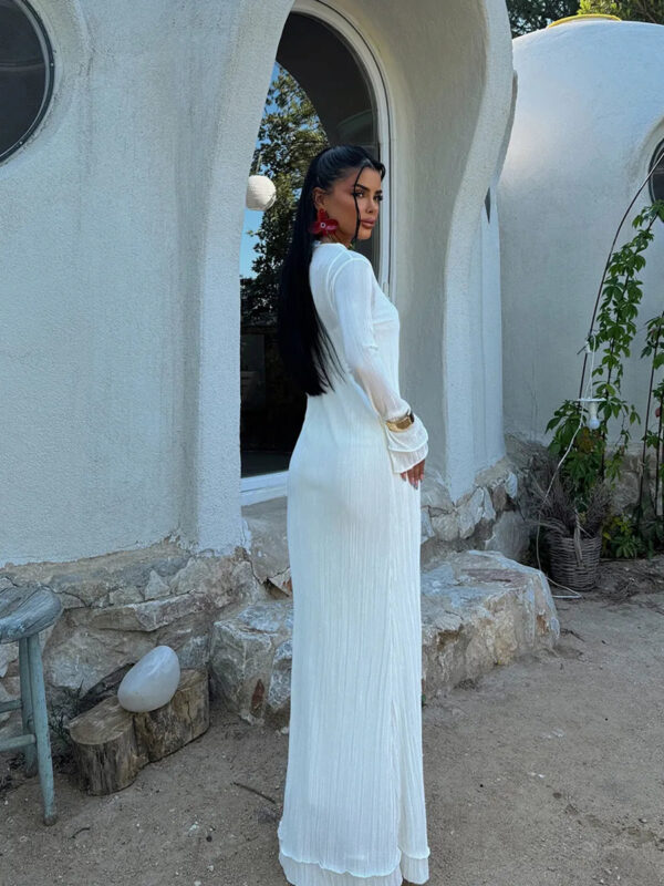 Plisirana haljina. Tkanina je blago providna, uz ovu boju dođe podstava, preporučujemo nositi neutralne boje ispod.