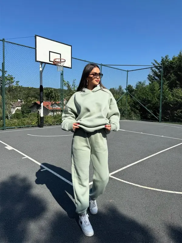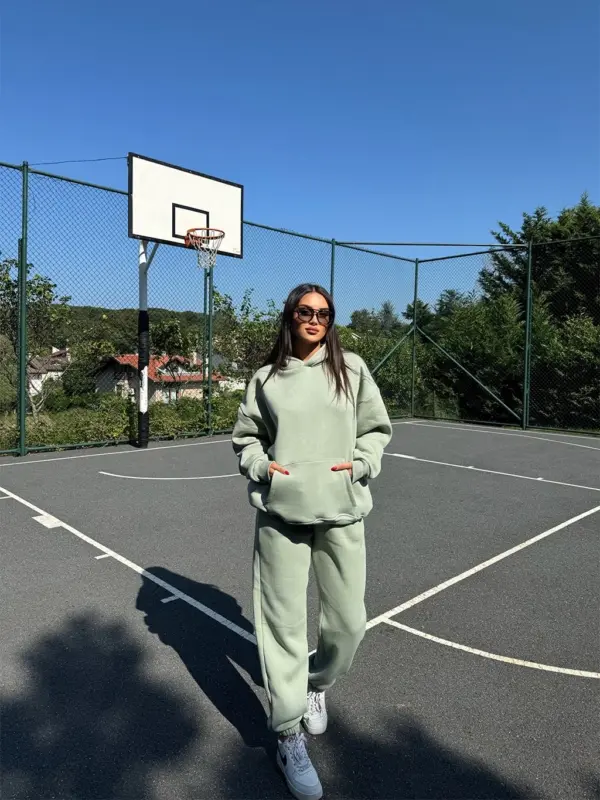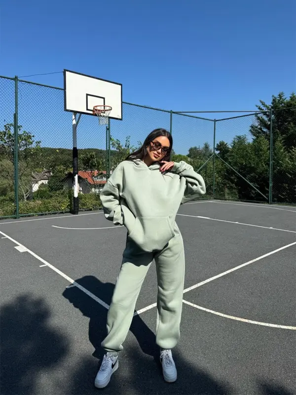 Oversized termo trenerka savršen je izbor za sve koji žele maksimalnu udobnost i toplotu. Ovaj komplet, s gornjim i donjim dijelom širokog kroja, nudi opušten izgled i neograničenu slobodu pokreta. Dizajnirana za hladnije dane, naša trenerka izrađena je od visokokvalitetnih termo materijala koji zadržavaju toplotu, pružajući udobnost u svakom trenutku. Idealan je komad za opuštanje kod kuće, šetnje ili sportske aktivnosti. Kombinujte stil i funkcionalnost s našom termo oversize trenerkom!