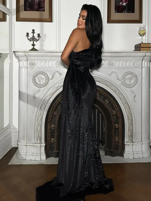 Svečana asimetrična haljina sa elastinom. Ova haljina se ističe svojim elegantnim dizajnom, dok šljokice daju dozu glamura. šljokice blago opadaju. Nema zipera niti izreza, a presjek u struku naglašava figuru i pruža savršeno pristajanje. Idealna je za posebne prigode kada želite zablistati. Upute za pranje: ručno pranje, ne sušiti u sušilici i ne peglati.