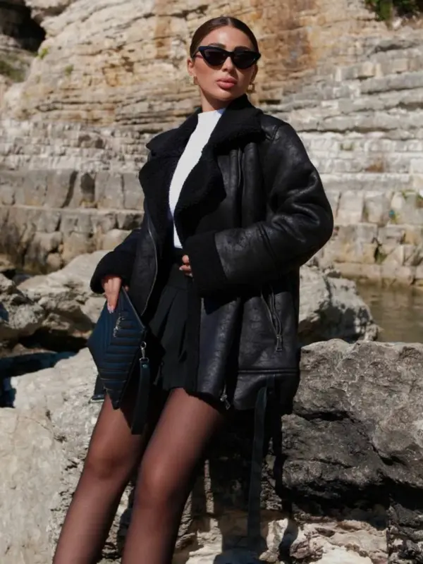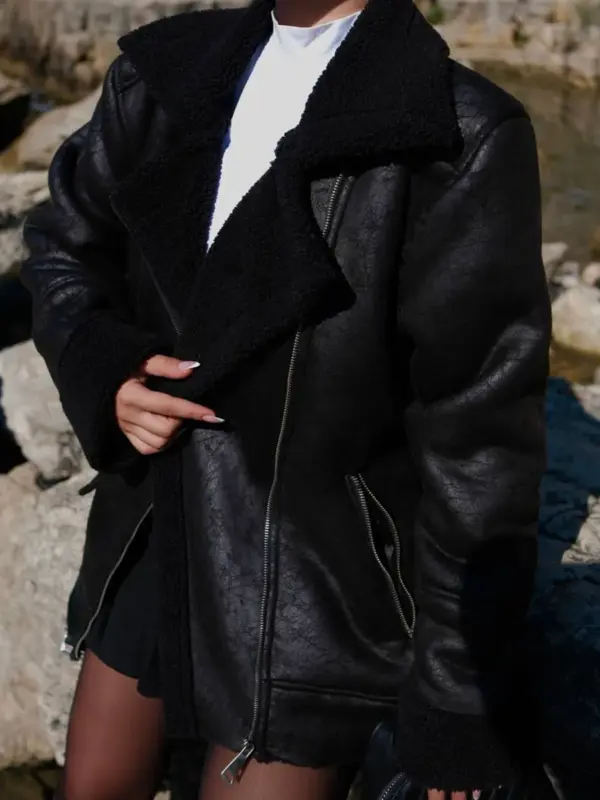 Jakna s ovratnikom. Podstava od umjetnog janjećeg runa. Prednji džepovi s patentnim zatvaračima. Preklop s patentnim zatvaračem.