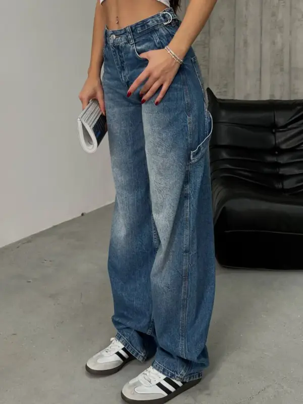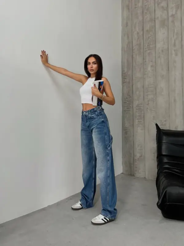 Farmerice ballon-vrećastog kroja s retro detaljima, izrađene od ispranog teksasa. Ovaj model kombinira udobnost širokog kroja s modernim vintage stilom, savršene za svakodnevne kombinacije. Farmerice su široke, prozračne, s naglašenim retro izgledom i savršeno se uklapaju u ležeran, ali trendovski izgled.