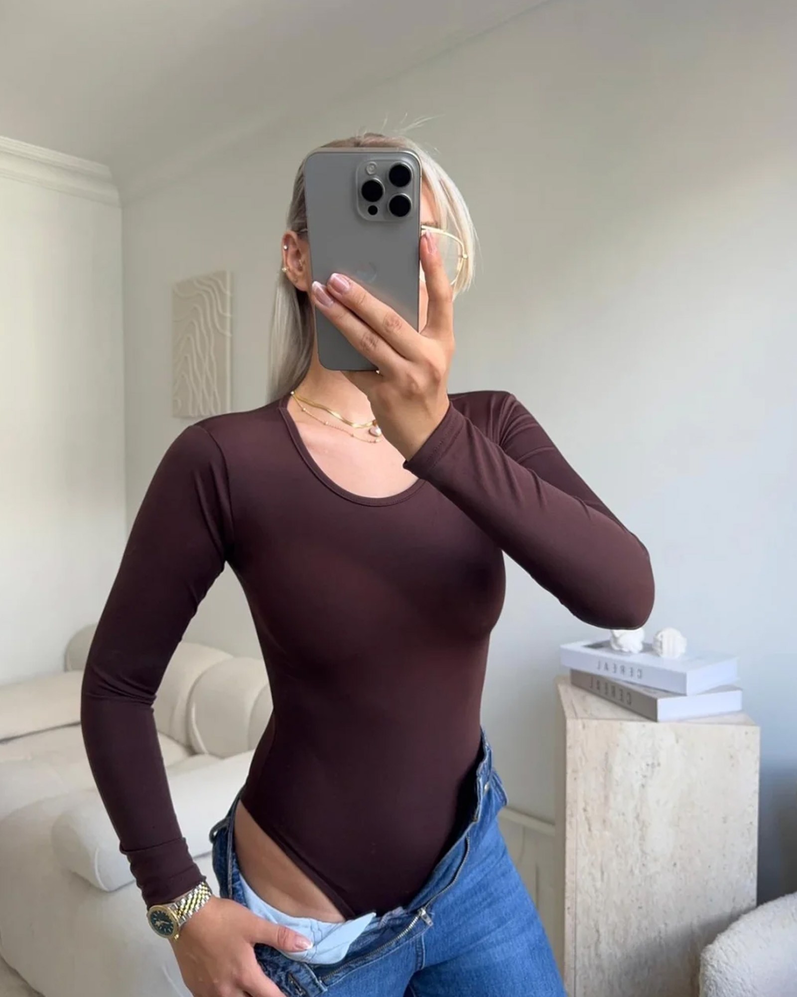 Ovaj elegantni body predstavlja ključni komad garderobe za sve koje vole jednostavne, ali efektne kombinacije. Zahvaljujući savršenom kroju i materijalu koji prati liniju tijela, lako se kombinuje uz suknje, farmerice ili elegantne pantalone.