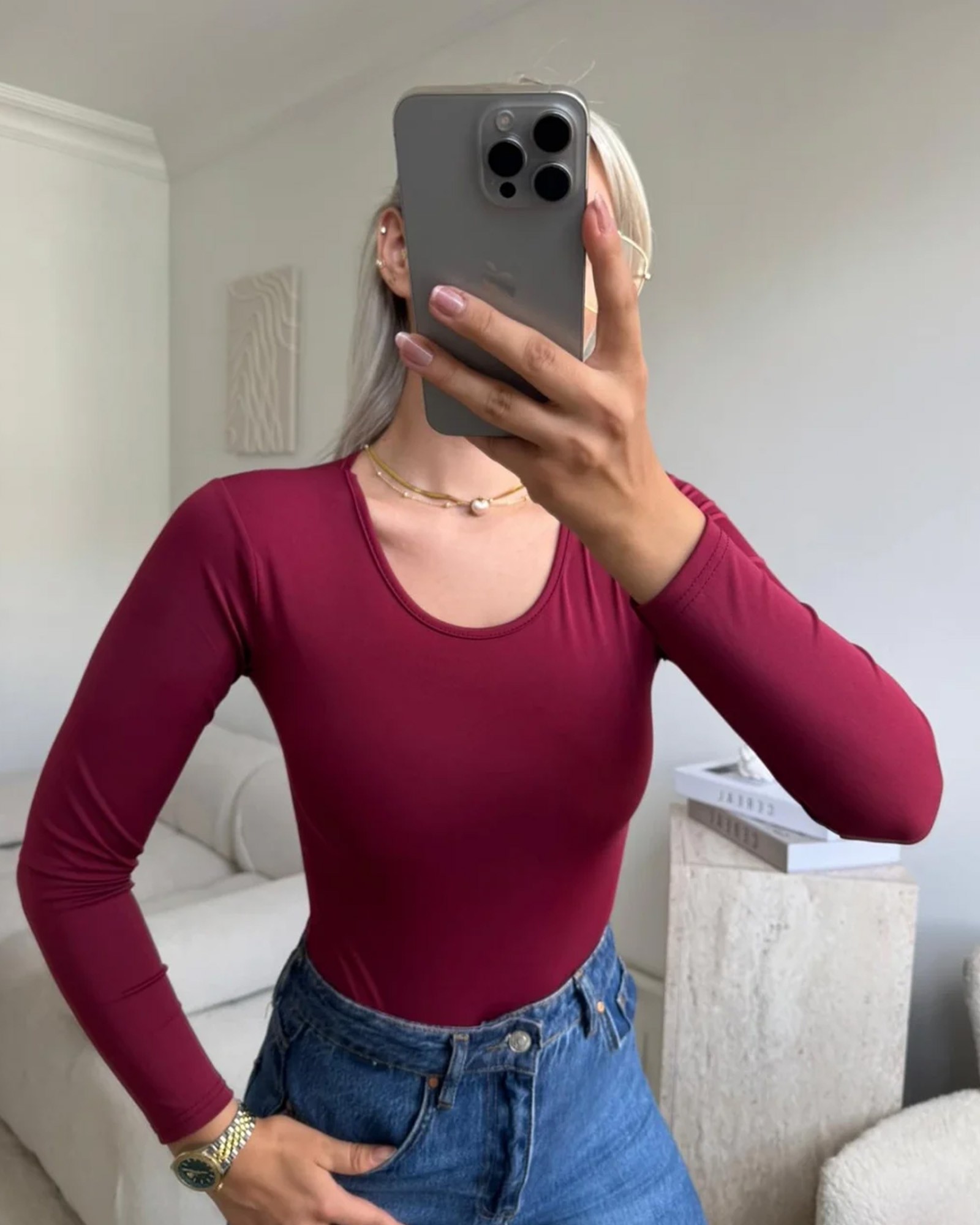 Ovaj elegantni body predstavlja ključni komad garderobe za sve koje vole jednostavne, ali efektne kombinacije. Zahvaljujući savršenom kroju i materijalu koji prati liniju tijela, lako se kombinuje uz suknje, farmerice ili elegantne pantalone.