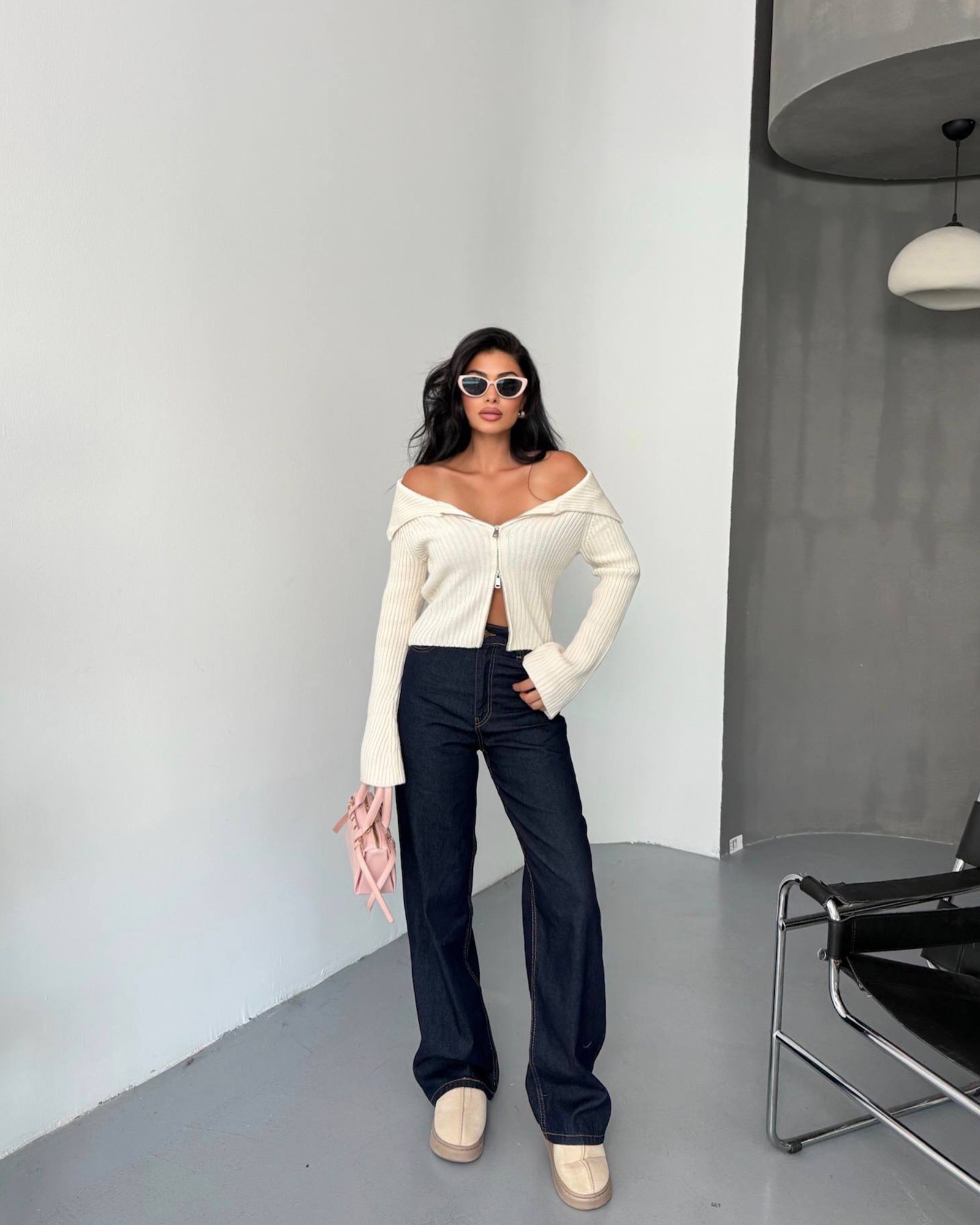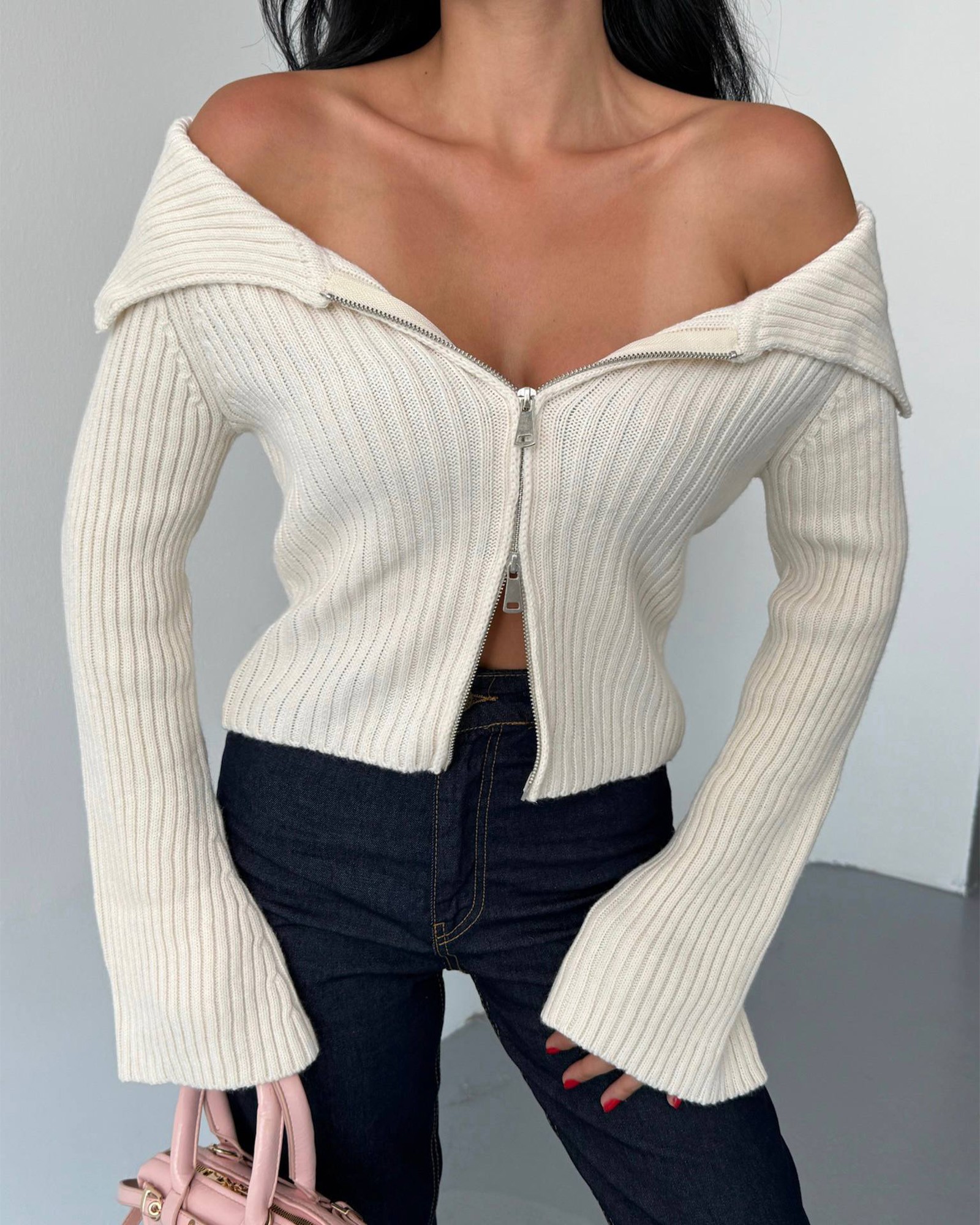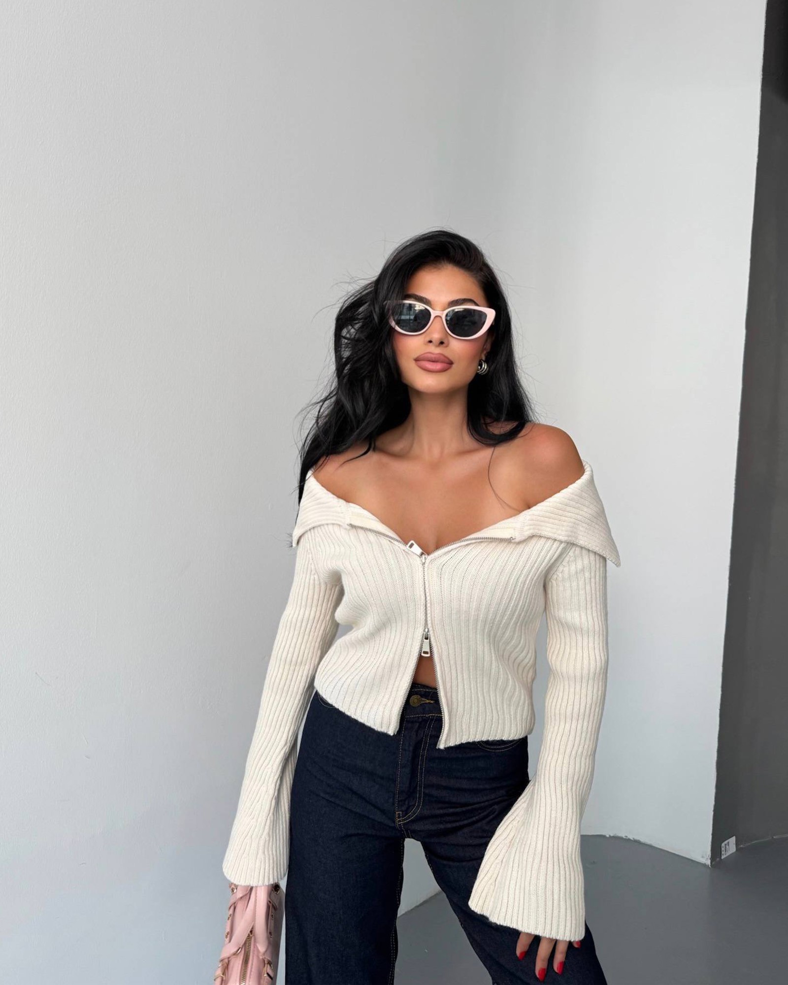 ✨ Rebrasti off-shoulder džemper sa zipom – svestran & seksi ✨