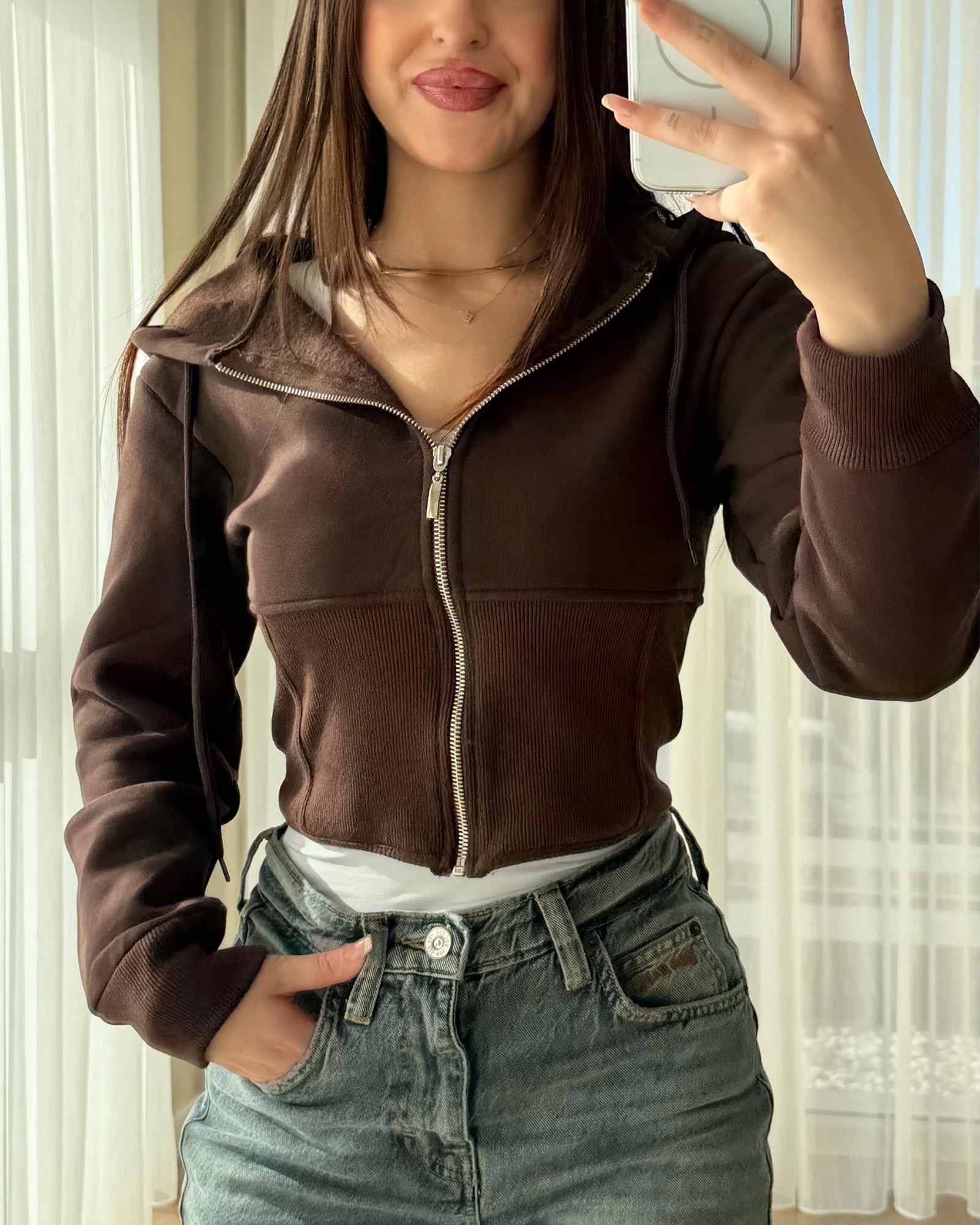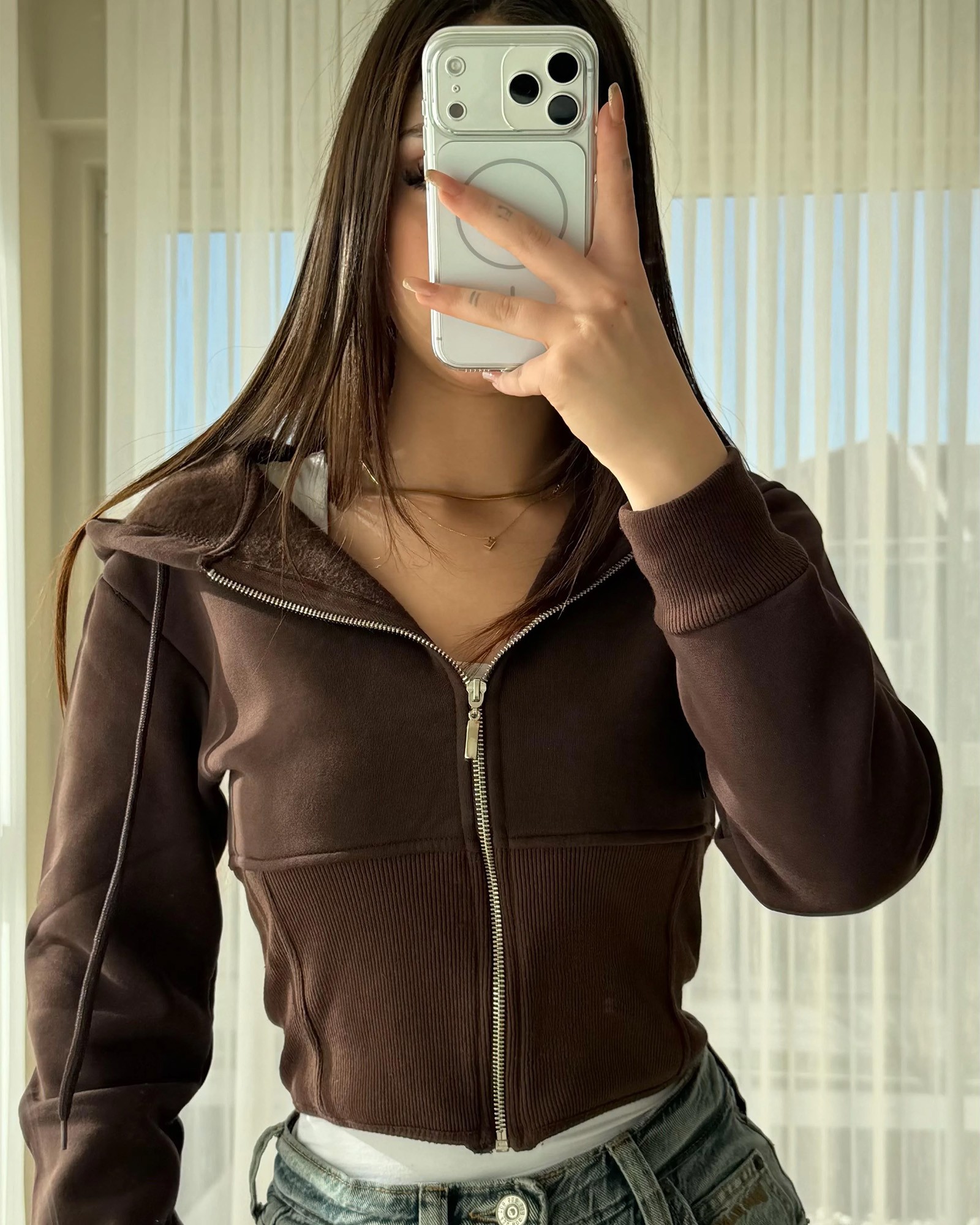 Udoban, mekan i savršen za slojevito stiliziranje – kratki zip hoodie koji grije bez dodatne težine.