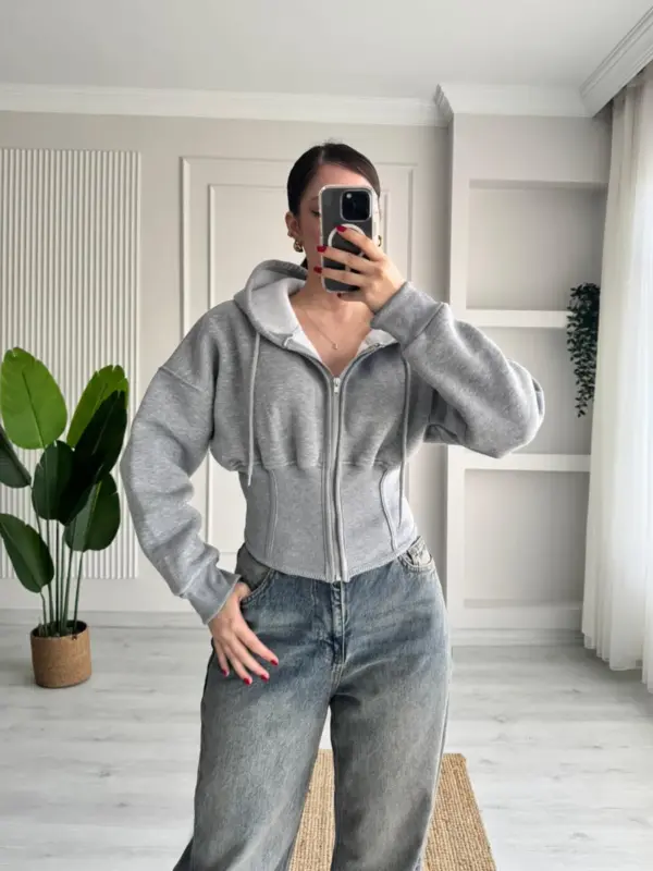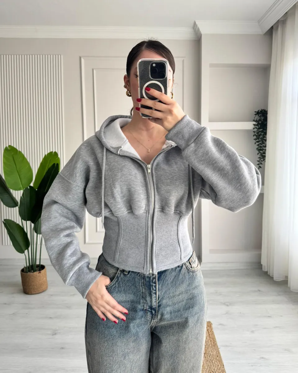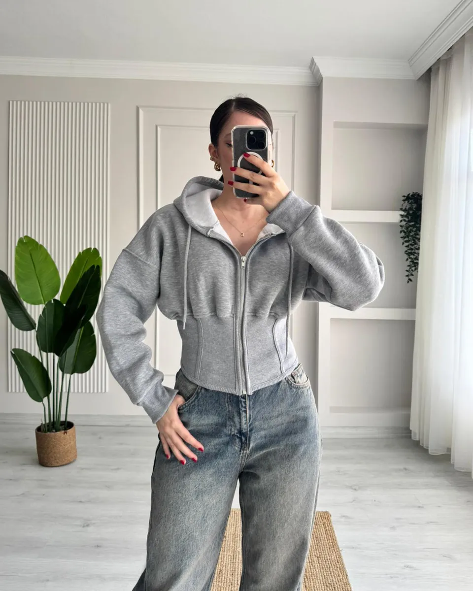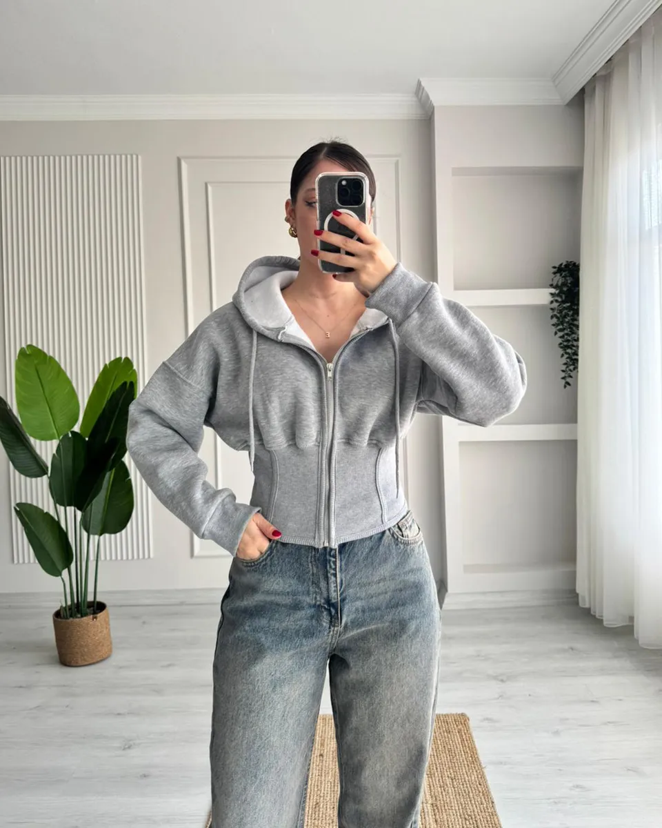 Udoban, mekan i savršen za slojevito stiliziranje – kratki zip hoodie koji grije bez dodatne težine.