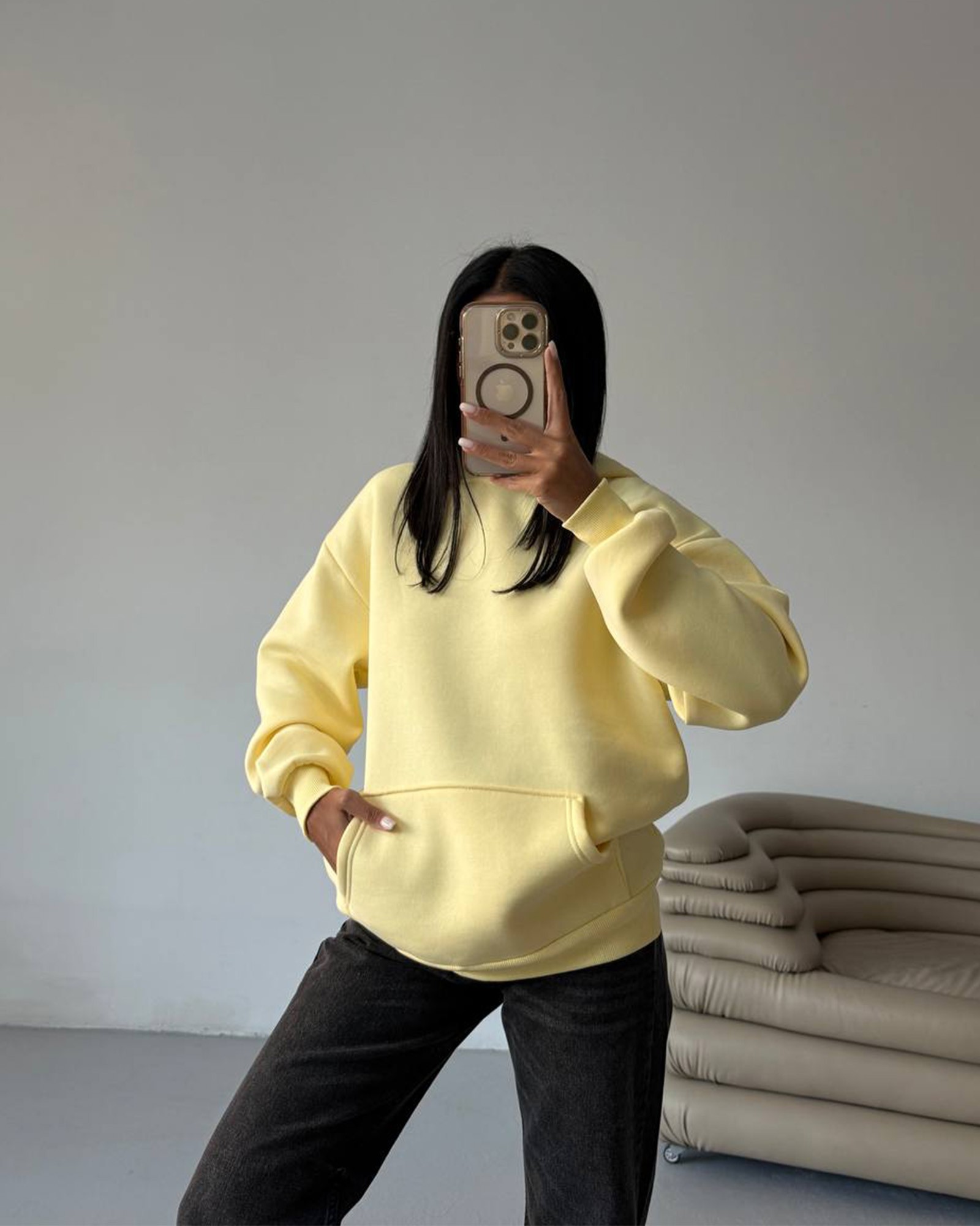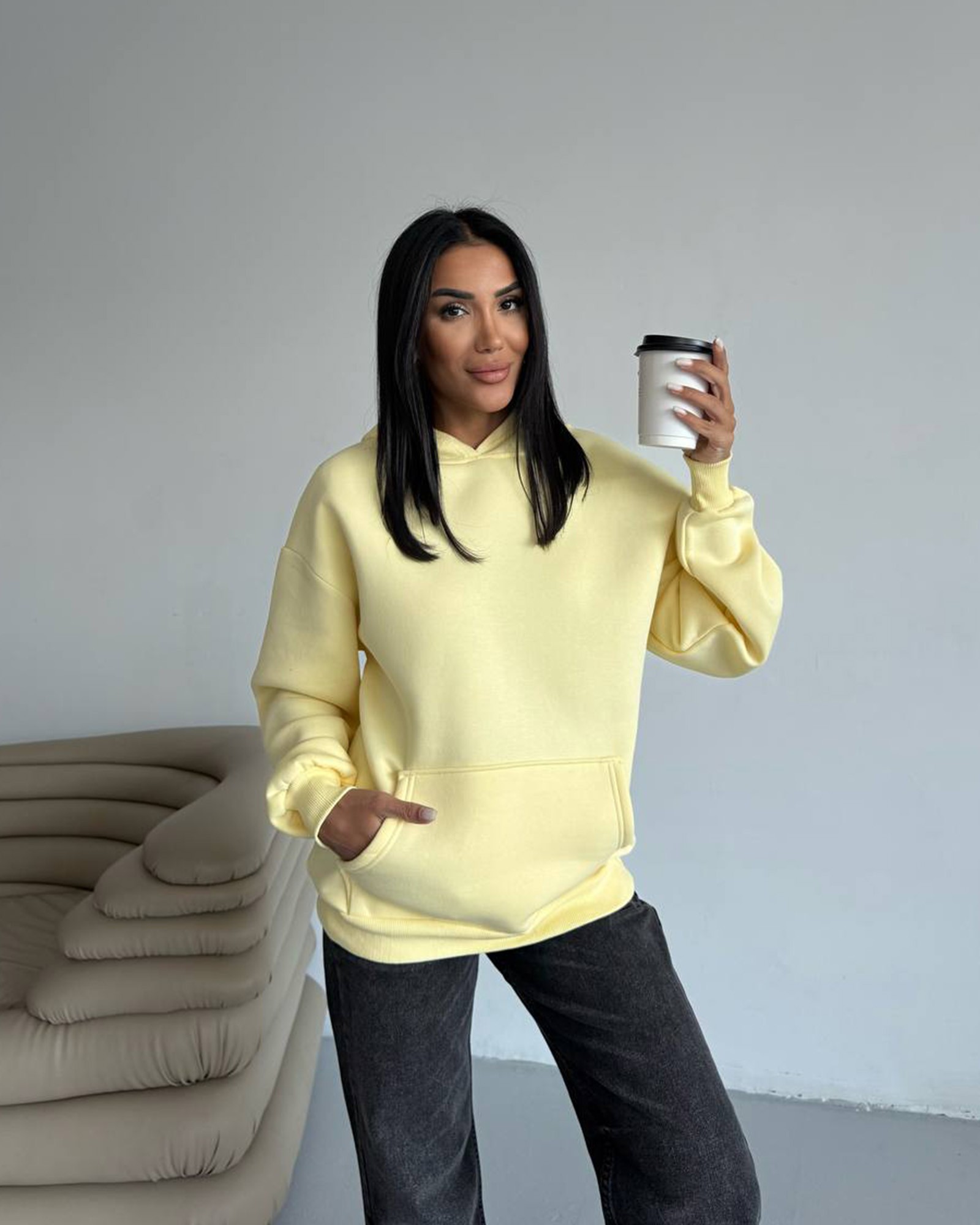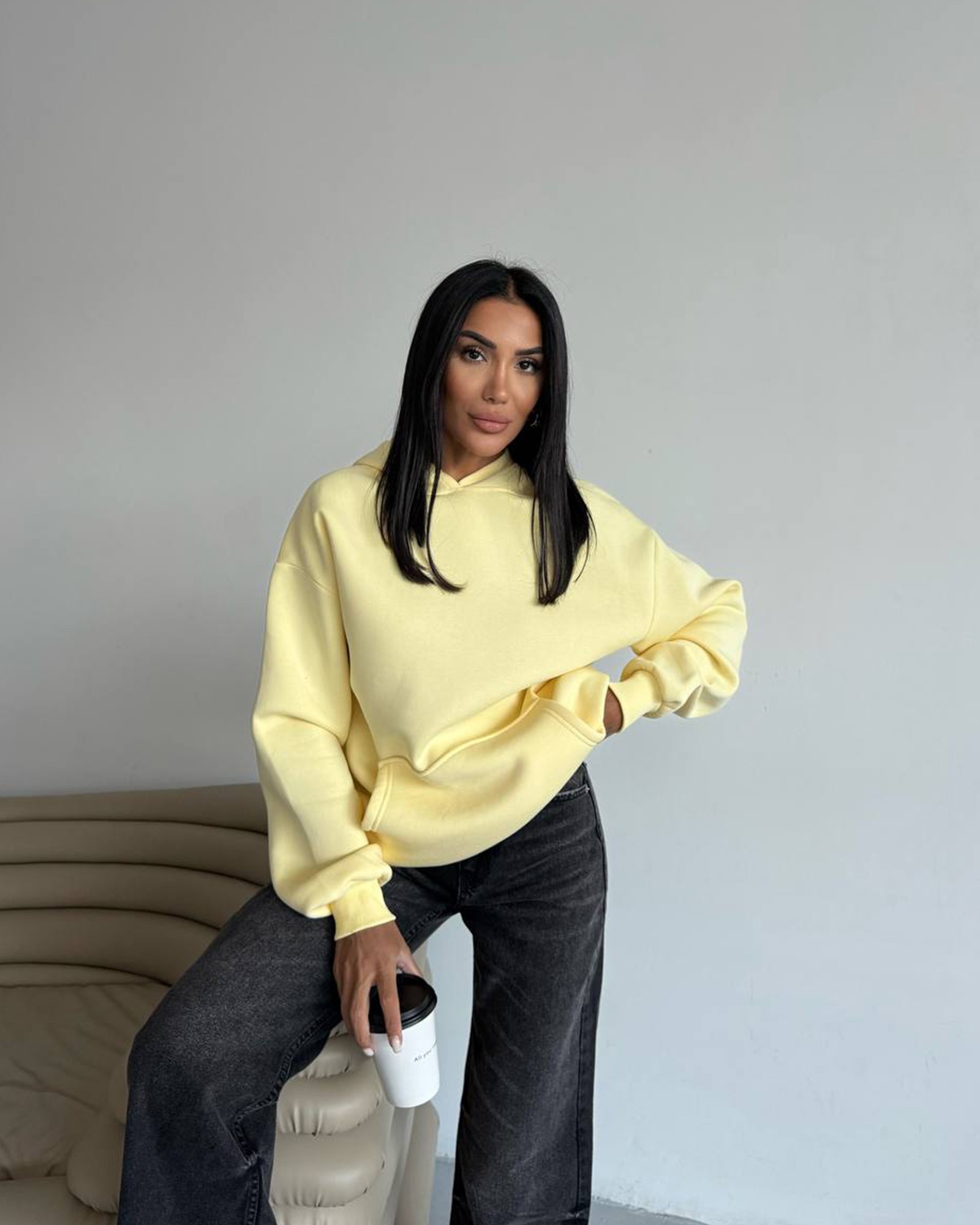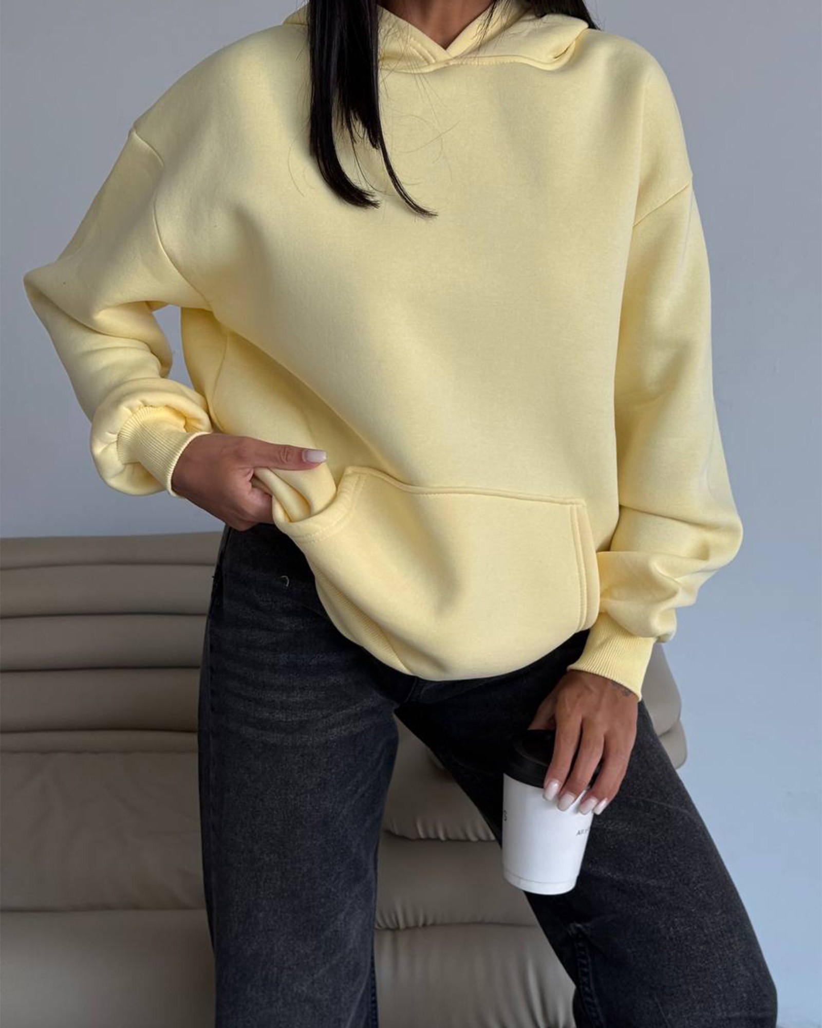 Nosi uz traper ili trenirku za svakodnevni look, a u hladnijim danima složi ispod kaputa ili puf jakne. Oversize kroj je idealan i za “cozy” vikend varijante.