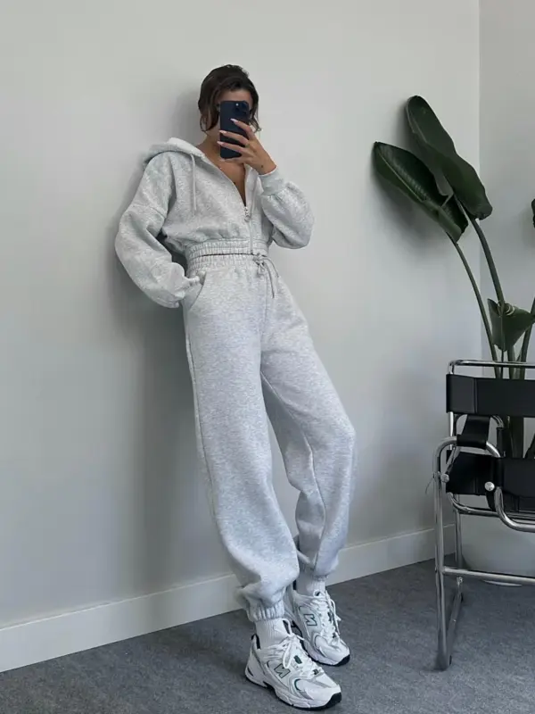 Savršeno udobna, mekana, i topla dvodjelna trenerka, idealna za hladnije dane. Gornji dio crop model, i na kopčanje.