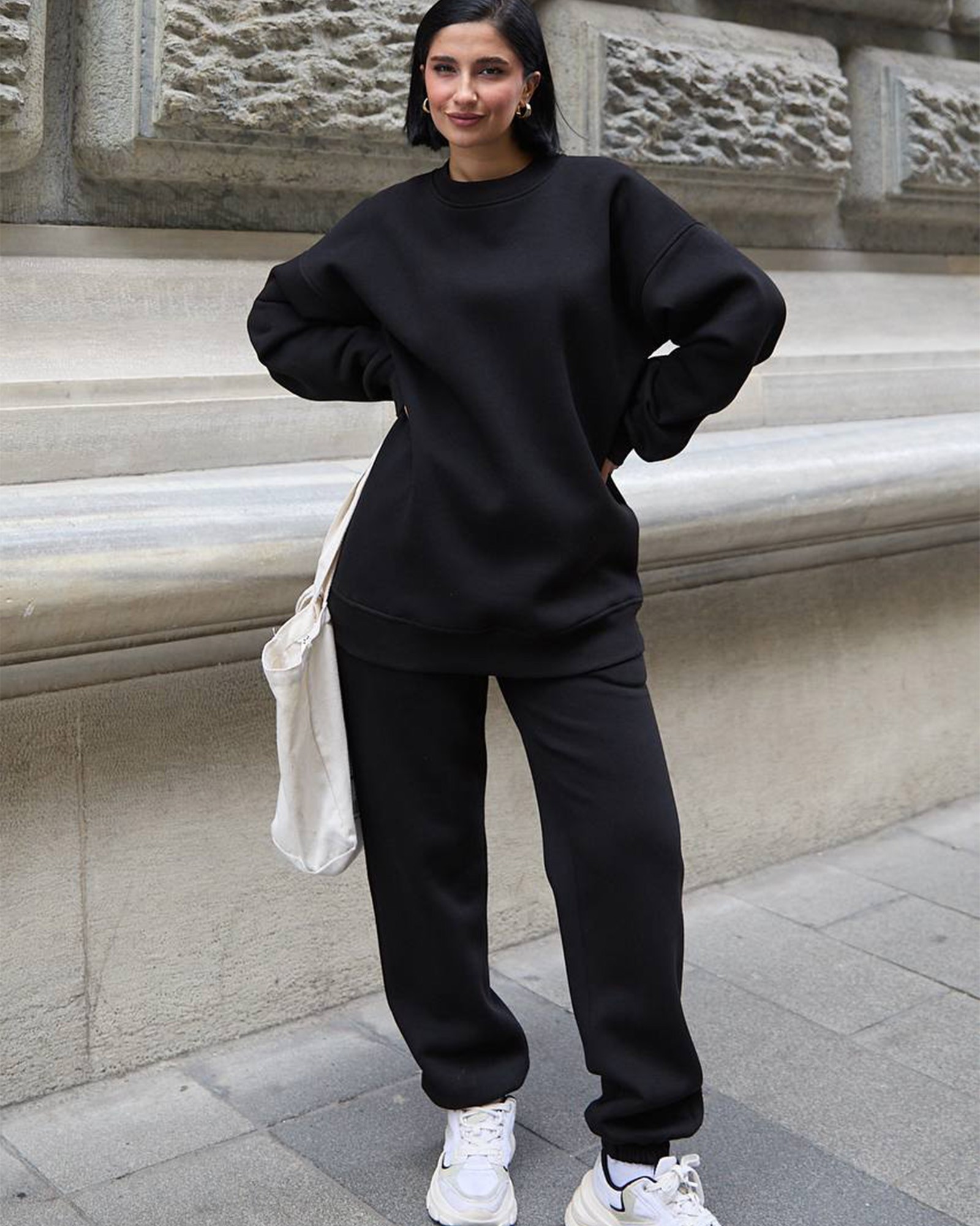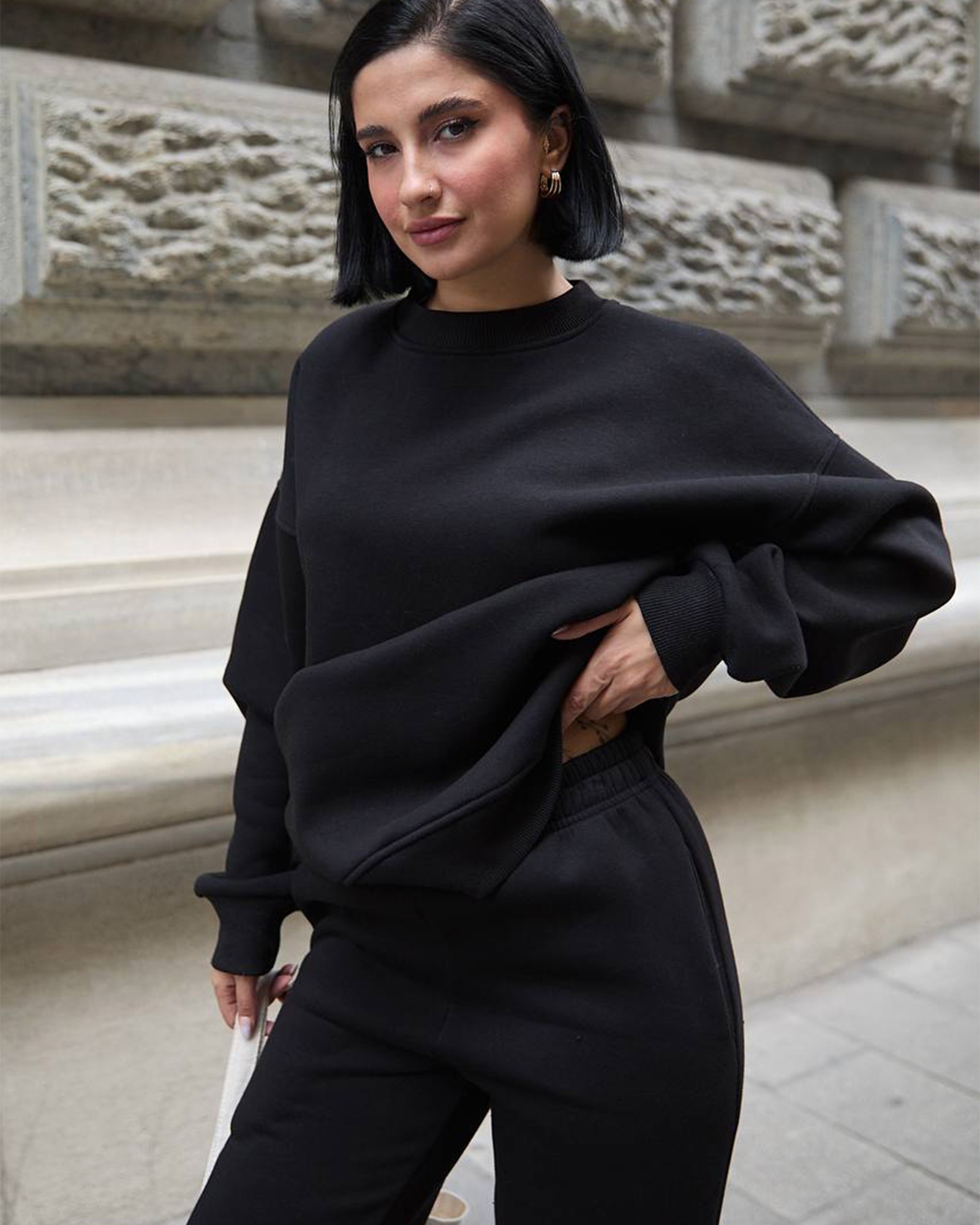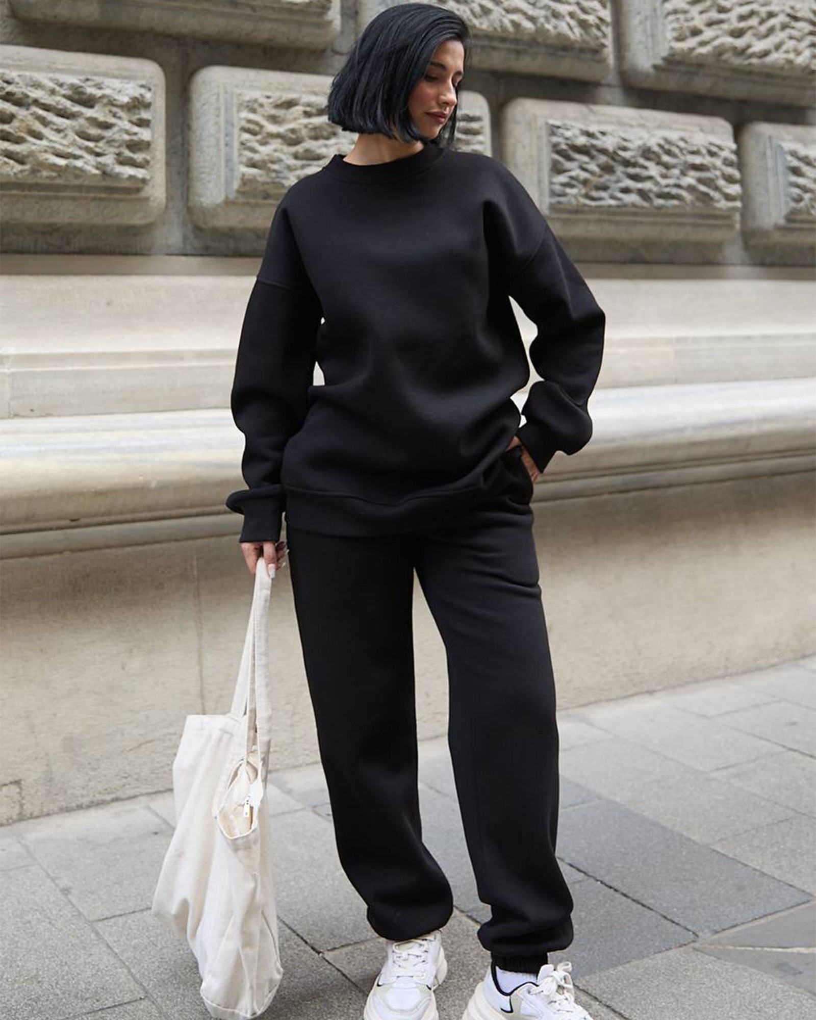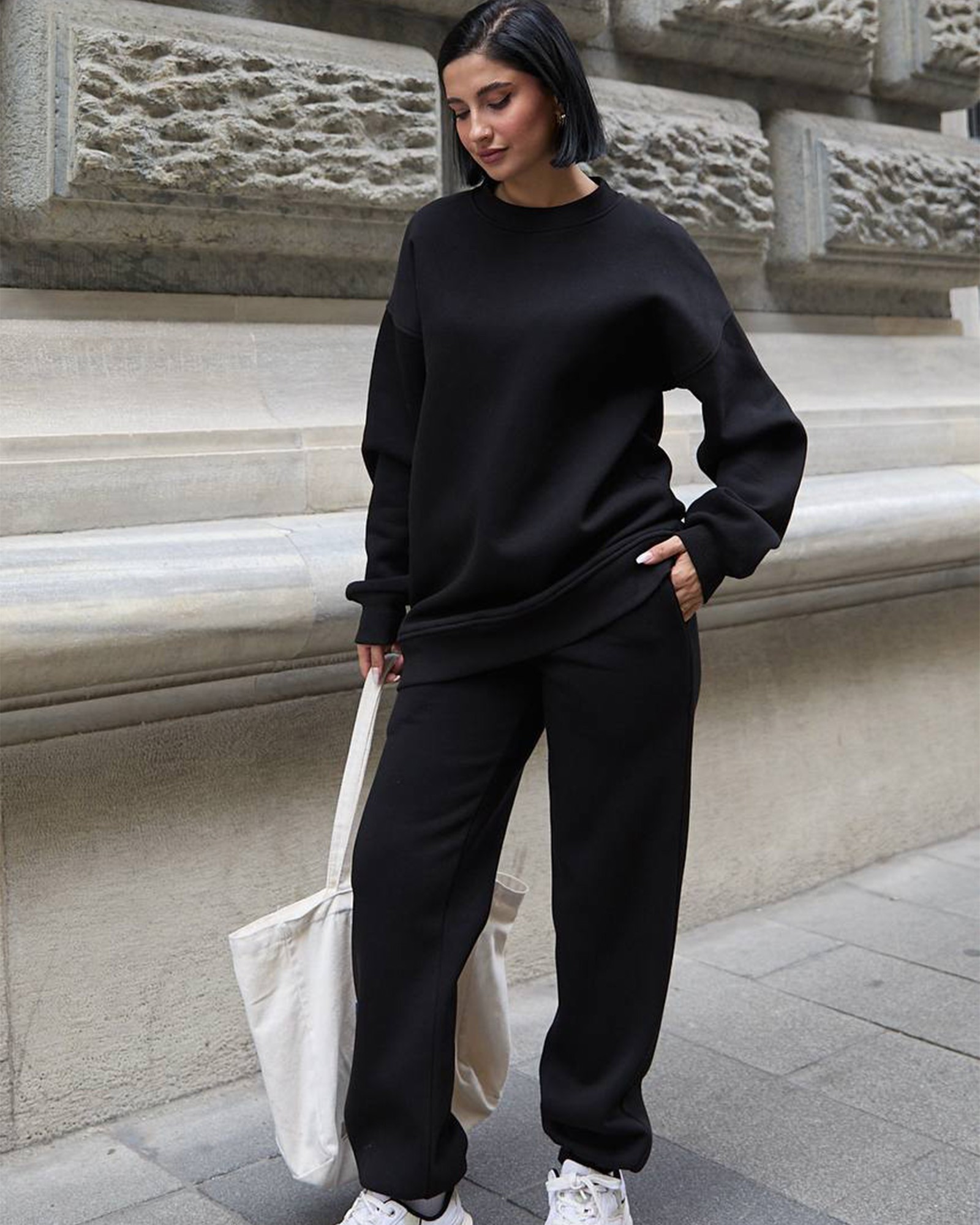 Savršena kombinacija udobnosti, jednostavnosti i topline — idealna za svakodnevno nošenje, šetnju ili opuštanje kod kuće.