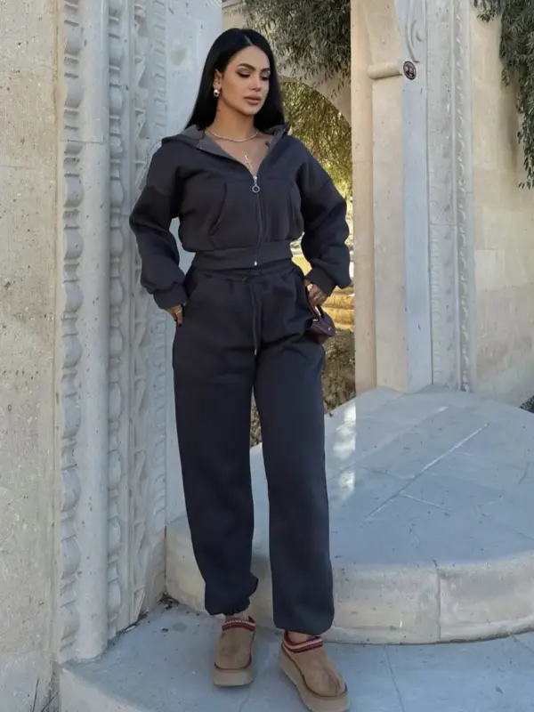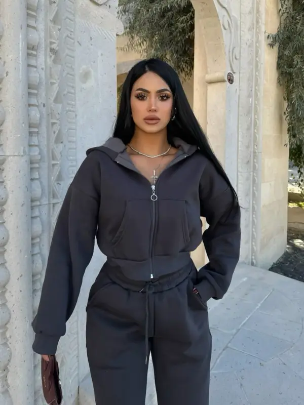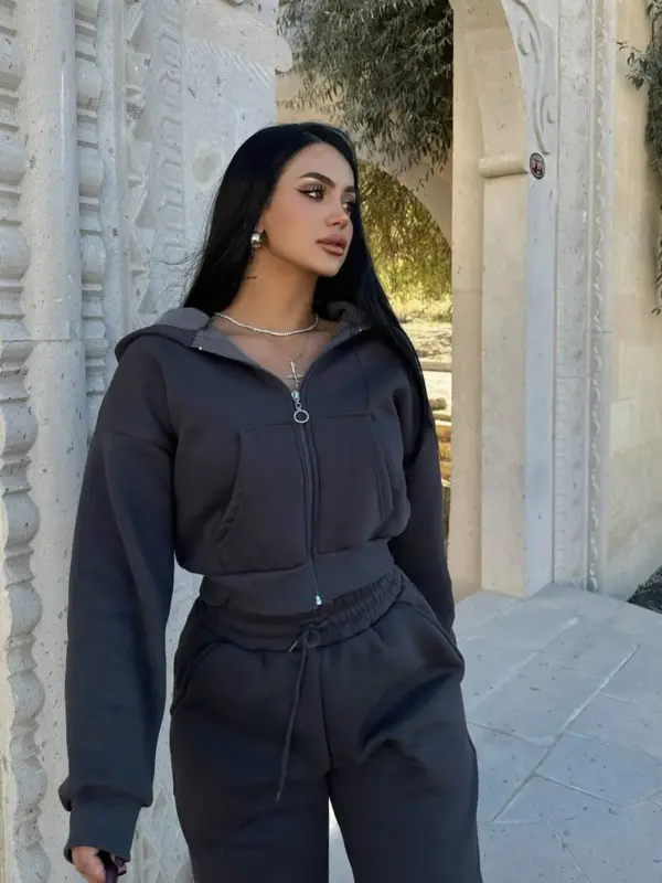 Savršeno udobna, mekana, i topla dvodjelna trenerka, idealna za hladnije dane. Gornji dio crop model, i na kopčanje.