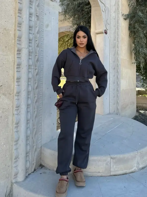 Savršeno udobna, mekana, i topla dvodjelna trenerka, idealna za hladnije dane. Gornji dio crop model, i na kopčanje.