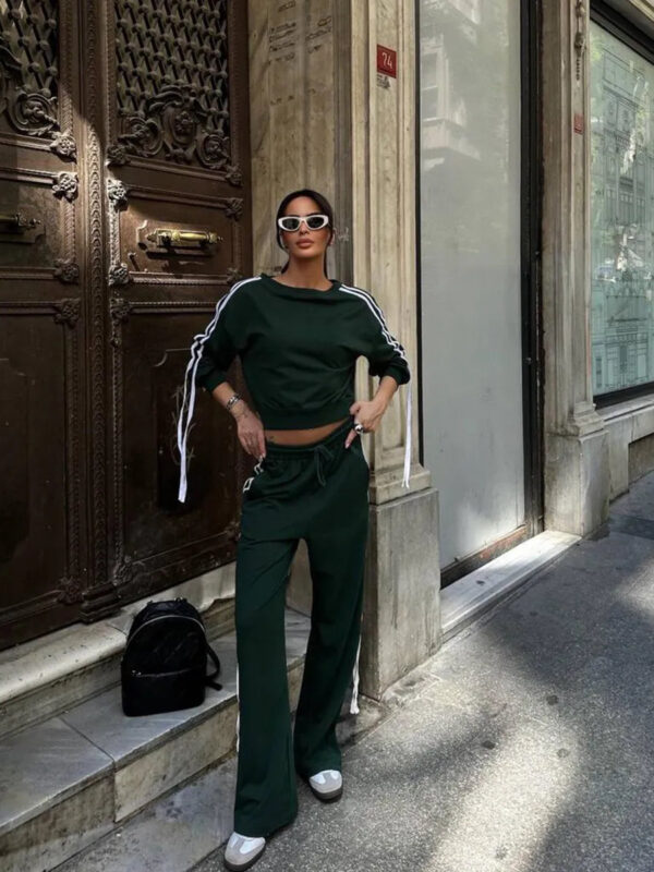 Dvodjelna trenerka sa elastinom i gumom u struku. Nije termo.