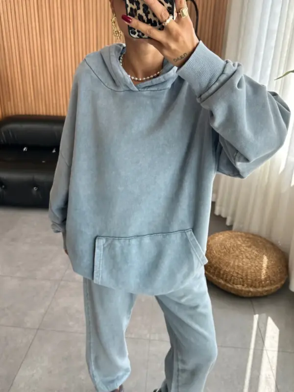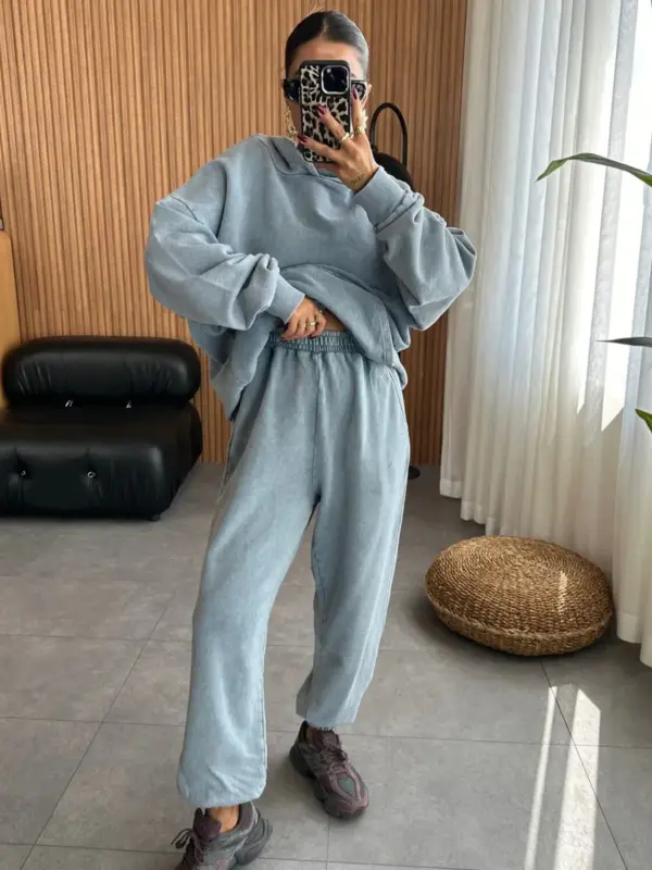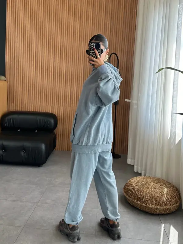 Oversize dvodjelna trenerka savršen je izbor za sve koji žele maksimalnu udobnost. Ovaj komplet, s gornjim i donjim dijelom šireg kroja, gumom u struku i po dnu nogavica, nudi opušten izgled i neograničenu slobodu pokreta. Idealan je komad za opuštanje kod kuće, šetnje ili sportske aktivnosti.