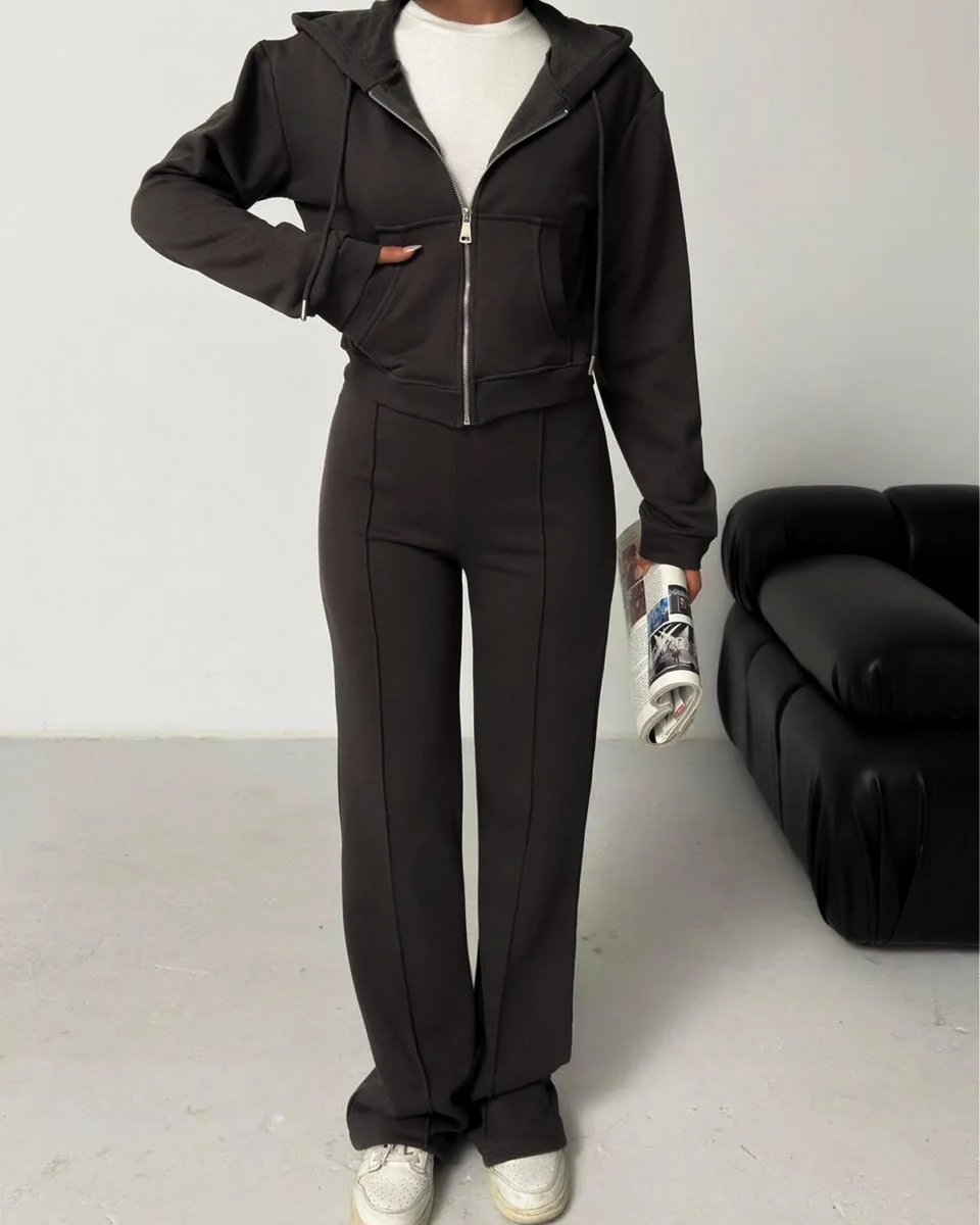 ✨ Dvodijelna trenerka s ravnim nogavicama i crop duksericom ✨