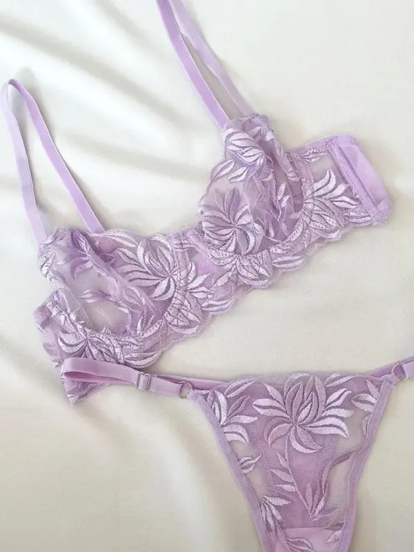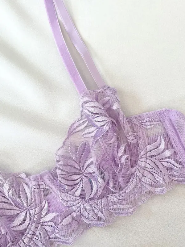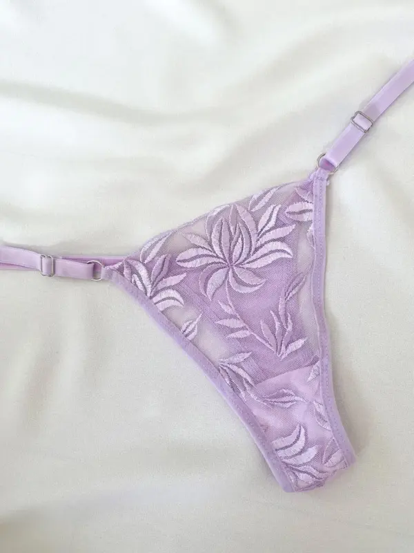 Dvodjelni lingerie set u kombinaciji mrežice i veza s podesivim naramenicama na gornjem dijelu i podesivom širinom u struku. Upute za održavanje: pranje na 30°C ili ručno, ne sušiti u sušilici, ne peglati.