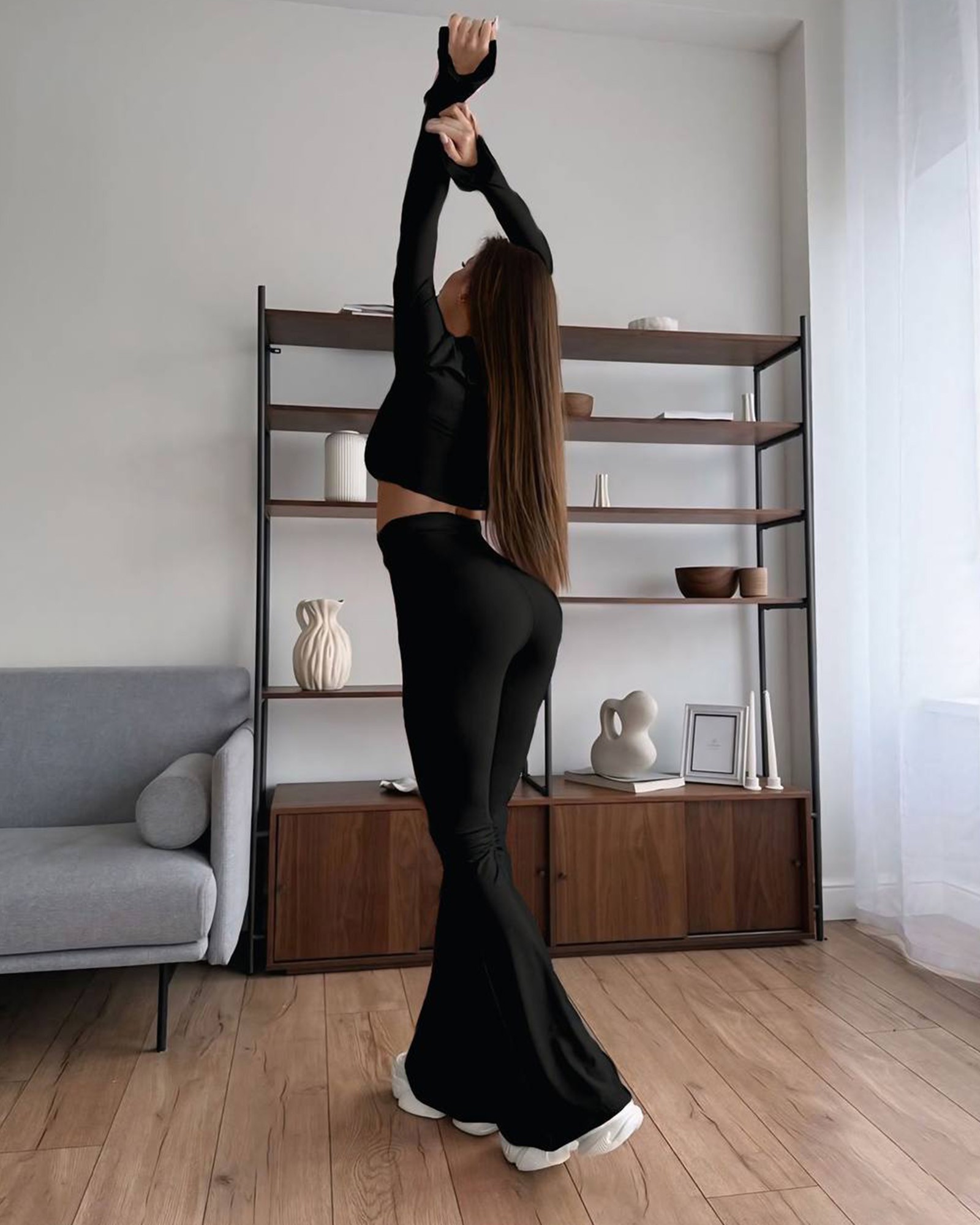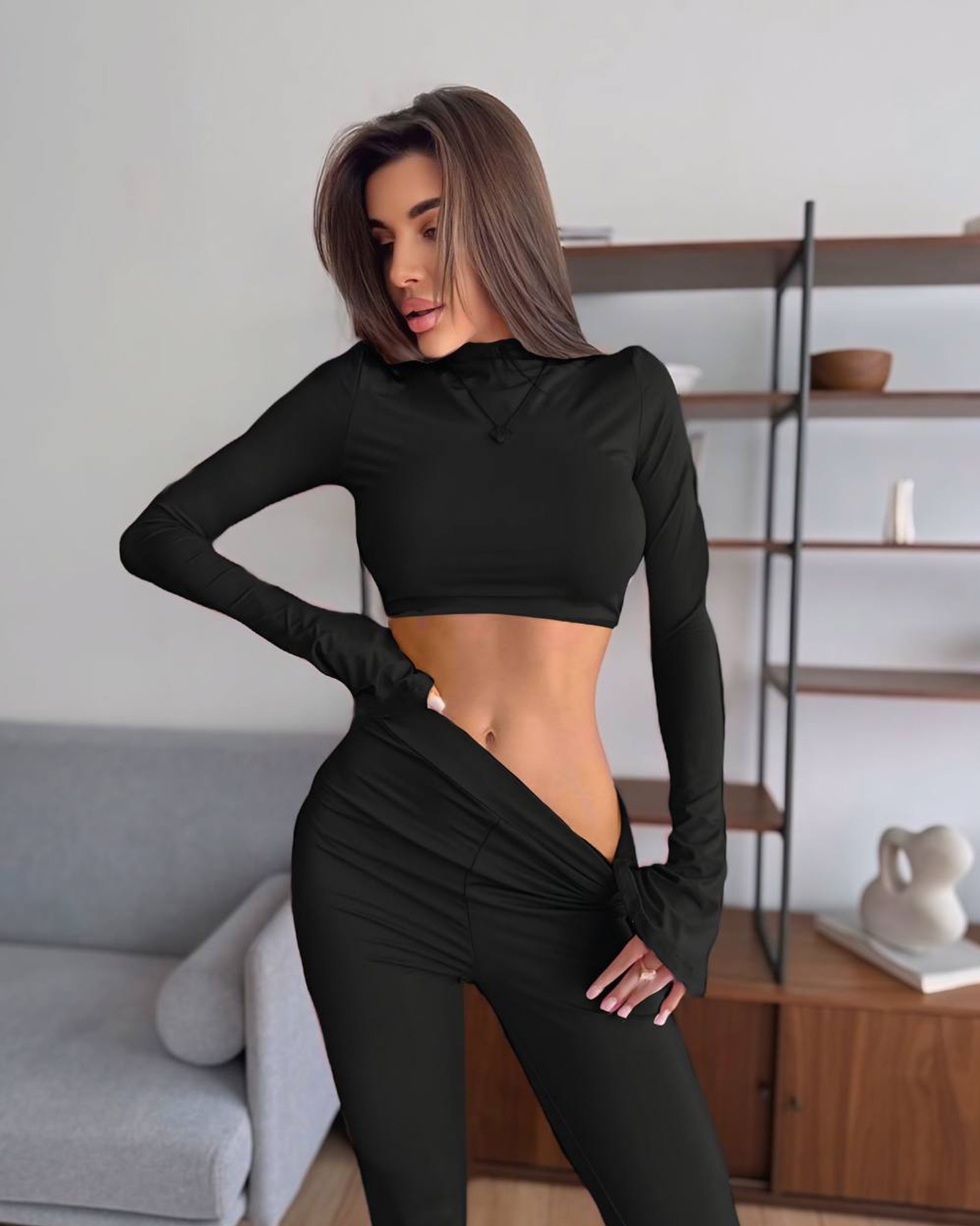 Minimalistički, ali jako efektan set od mekog rastezljivog jerseya koji prati liniju tijela. Savršen za trening, putovanja ili casual izlazak.