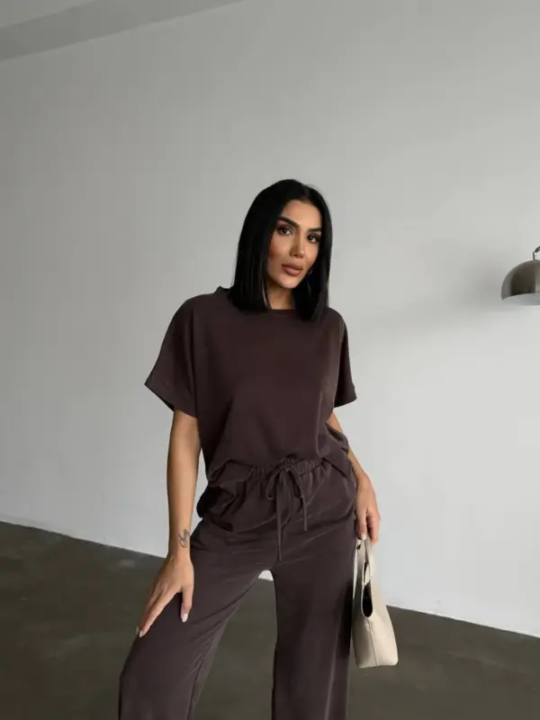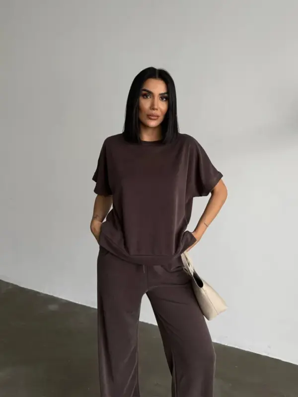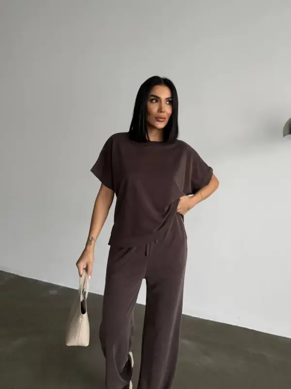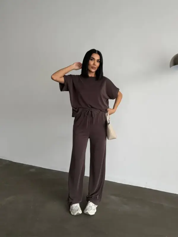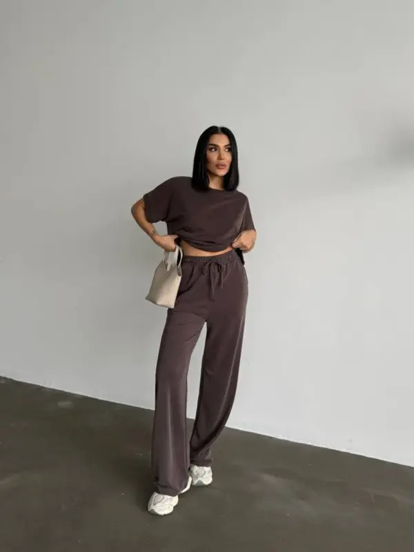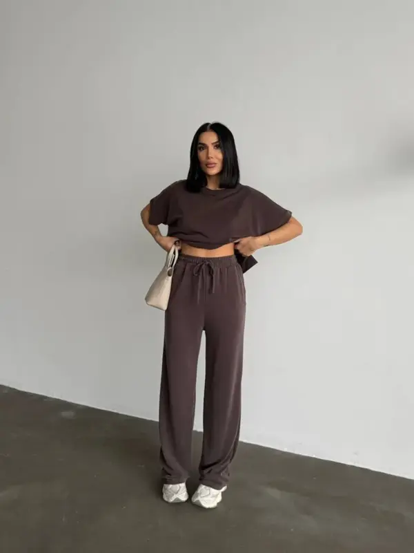 Opustite se sa stilom u ovom super udobnom dvodijelnom setu! Savršen za loungewear ili ležerne gradske kombinacije, set se sastoji od majice kratkih rukava i širokih hlača.