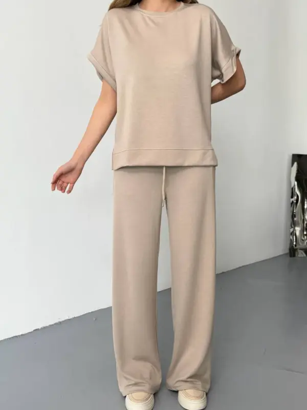 Opustite se sa stilom u ovom super udobnom dvodijelnom setu! Savršen za loungewear ili ležerne gradske kombinacije, set se sastoji od majice kratkih rukava i širokih hlača.
