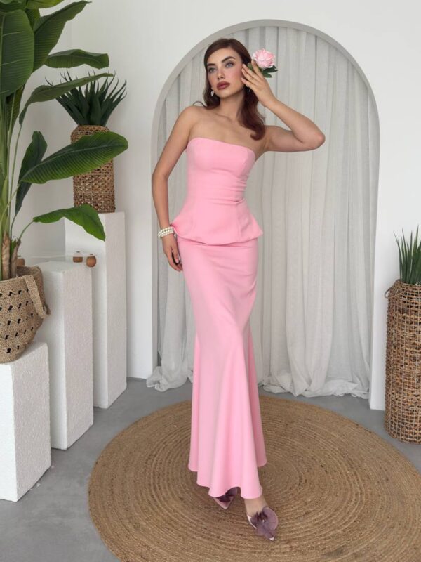 - Top: Strapless kroj s blago proširenim peplum rubom