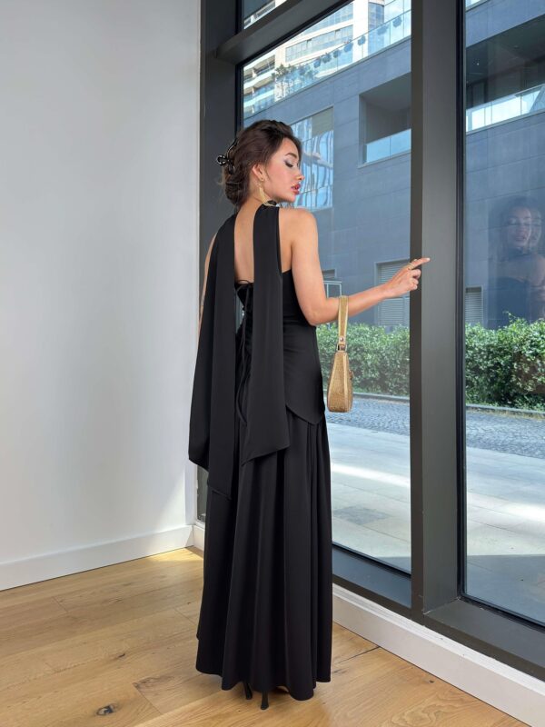 Ovaj luksuzni dvodijelni set savršen je izbor za večernje prilike kada želiš ostaviti snažan utisak. Gornji dio je pripijen i formiran, sa bočnim zatvaračem koji osigurava savršeno prijanjanje, dok je donji dio u formi dugačke suknje s visokim prorezom i elastičnim strukom za dodatnu udobnost. Uz komplet dolazi i dekorativni šal koji se može nositi oko vrata za dodatnu dozu elegancije.