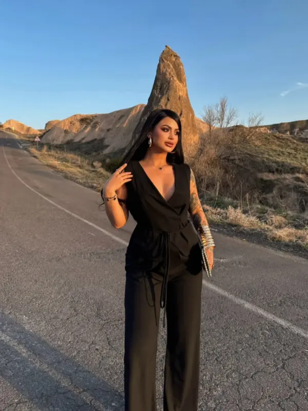 - Podesivi pojas za vezanje sprijeda – naglašava struk i stvara profinjenu siluetu