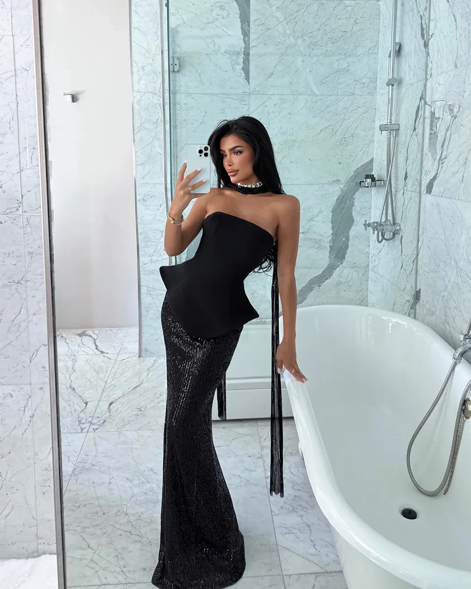 • Uska, duga suknja od gustih šljokica koje ne opadaju – ističe liniju tijela
