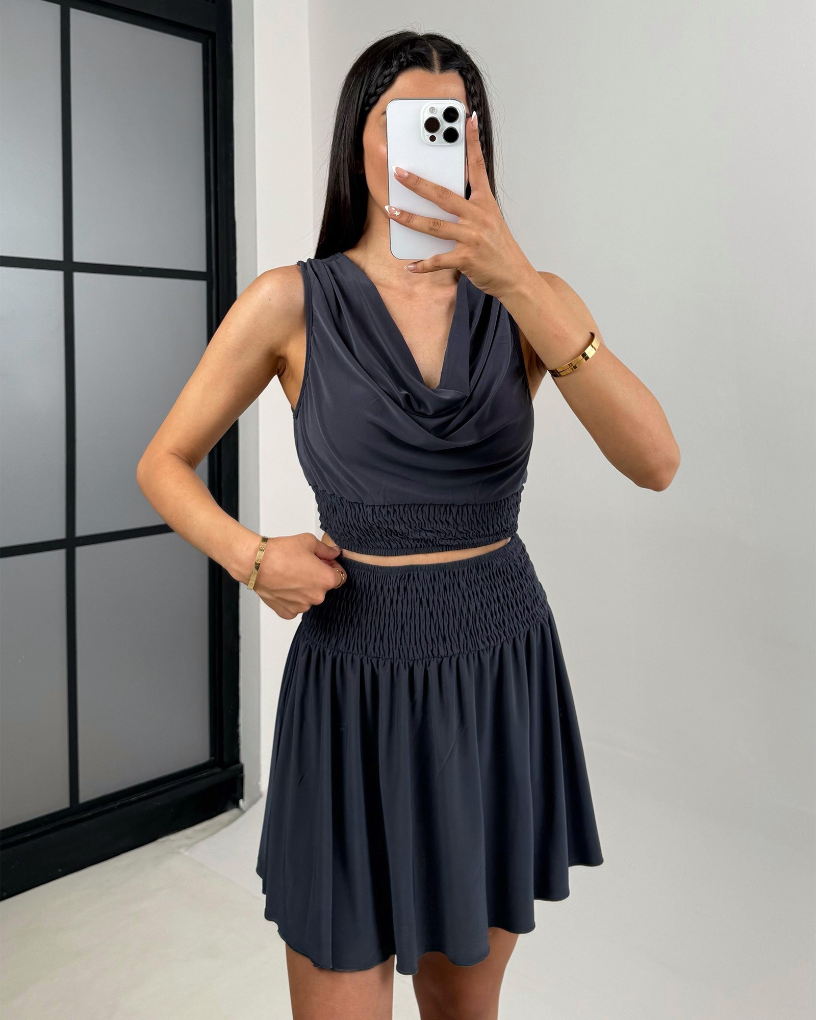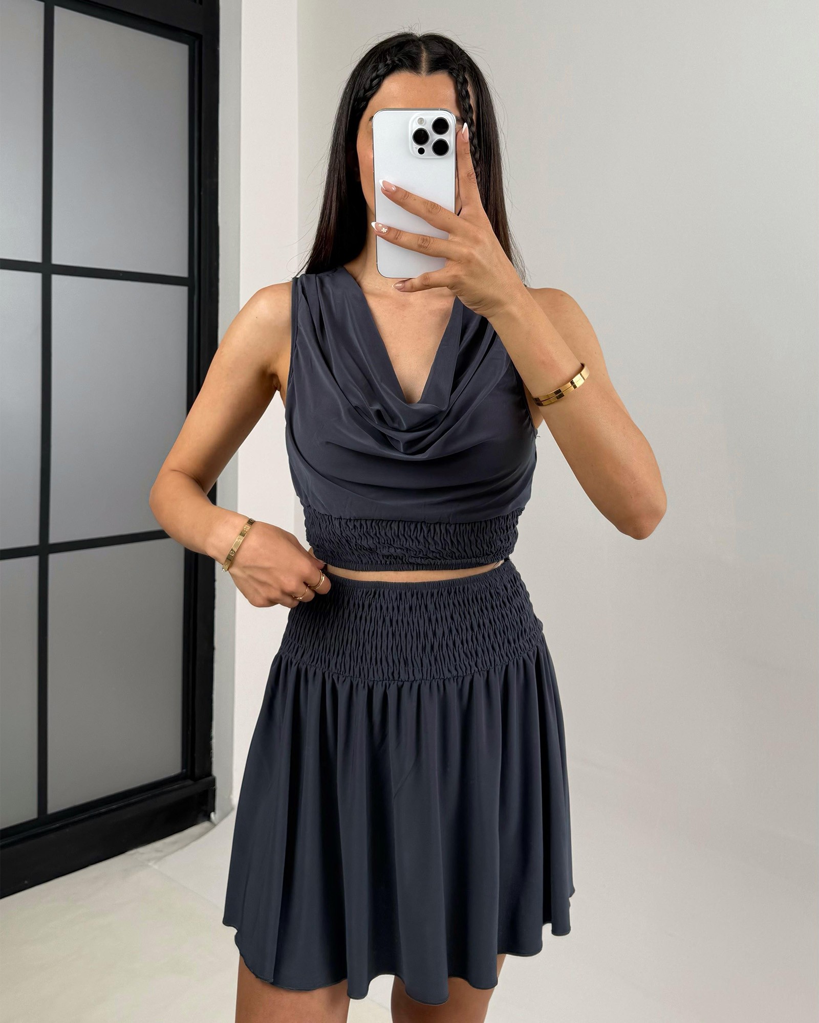 - Donji dio: Mini suknja sa elastičnim pojasom