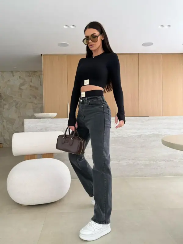 Jednostavne i trendi basic farmerice širokog kroja, savršene za svakodnevne kombinacije. Visoki struk pruža udobnost i ističe figuru, i daje moderan, ležeran izgled. Klasični džepovi sprijeda i pozadi dodaju praktičnost ovom bezvremenskom modelu.