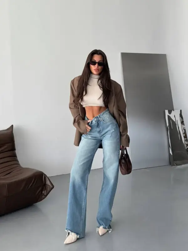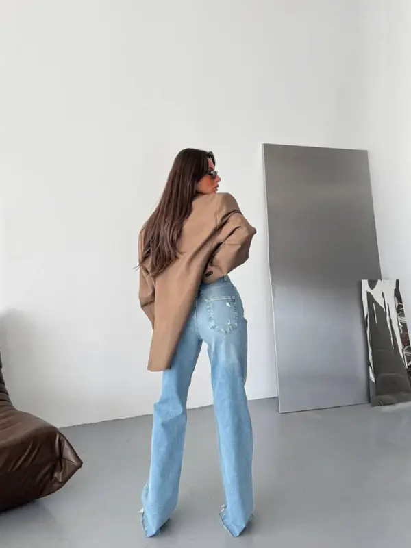 ✔ Poseban detalj: Neobrađen donji porub za trendi izgled, nemaju elastina.