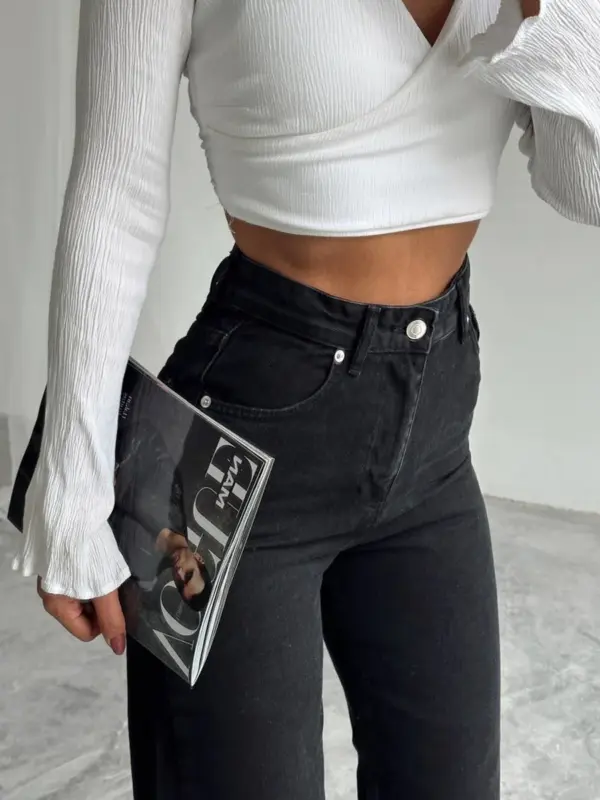 High-waist sive farmerice sa širokim nogavicama 👖✨
