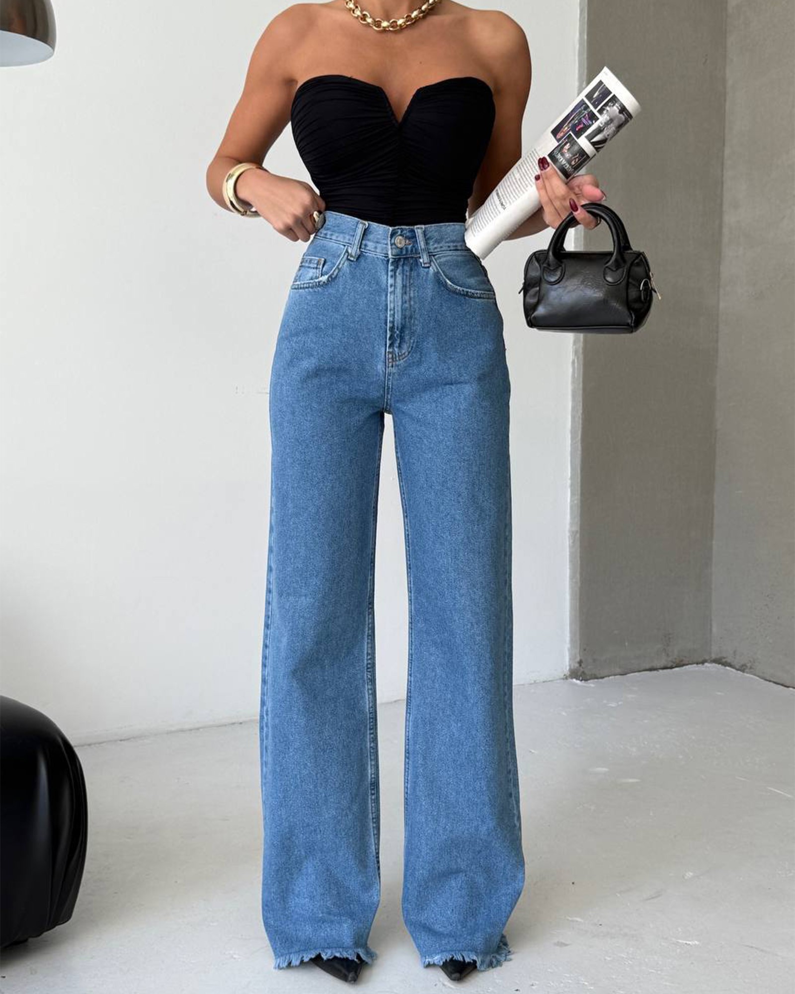 Moderne farmerice visokog struka u manjem kroju koji lijepo prati liniju tijela. Model je blago sužen kroz nogavice, što daje uredan i ženstven izgled, a istovremeno ostaje udoban za svakodnevno nošenje. Klasičan dizajn s pet džepova i kvalitetnim kopčanjem osigurava praktičnost i bezvremenski stil. Idealne su za kombiniranje s crop topovima, košuljama ili puloverima, kako za casual tako i za urbanije outfite.