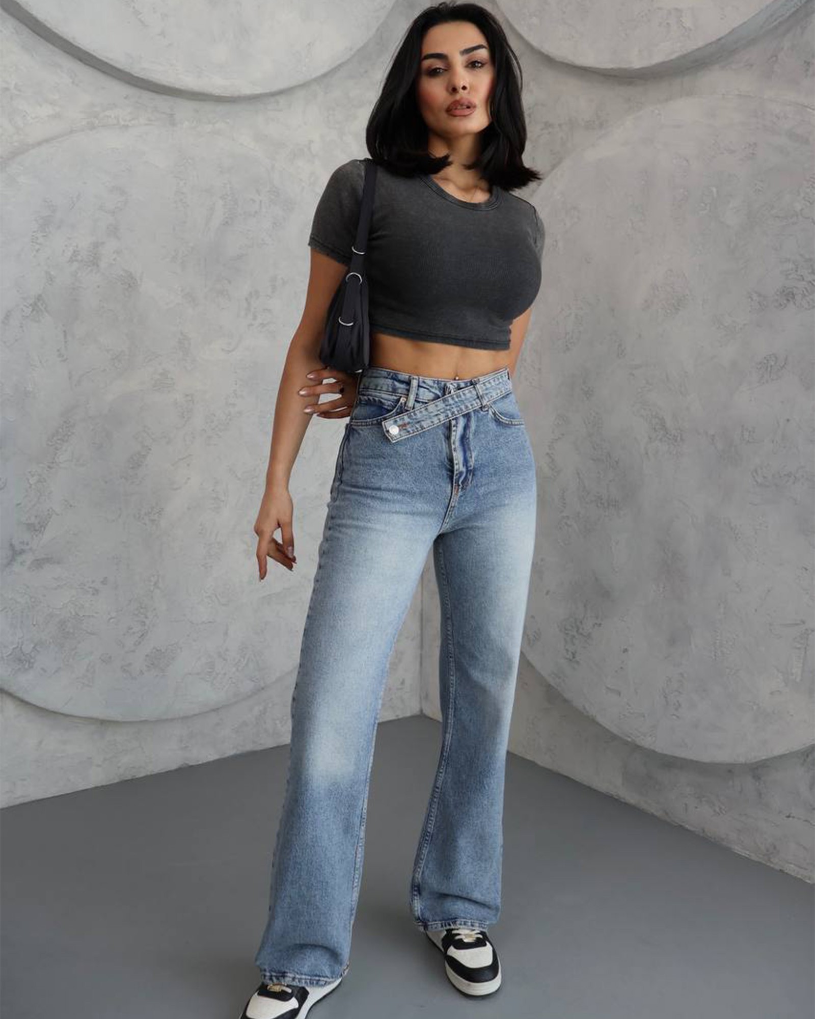 👖 Asimetrične high-waist farmerice – urban i trendi statement