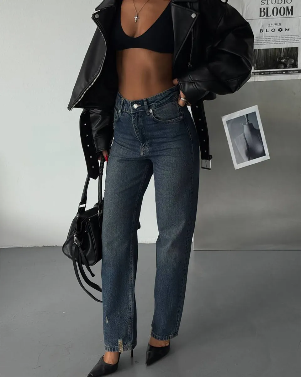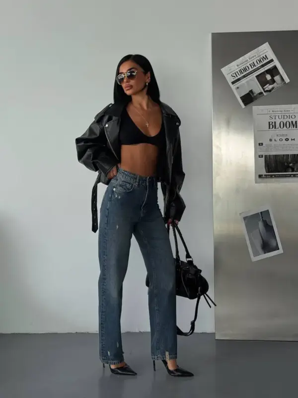• Klasičan mom fit kroj – lagano uži u struku, širi kroz nogavice