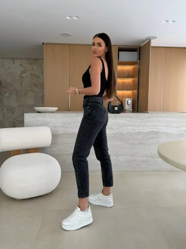 Jednostavne i trendi basic farmerice momkroja, savršene za svakodnevne kombinacije. Visoki struk pruža udobnost i ističe figuru d okKlasični džepovi sprijeda i pozadi dodaju praktičnost ovom bezvrkomenskom modelu.