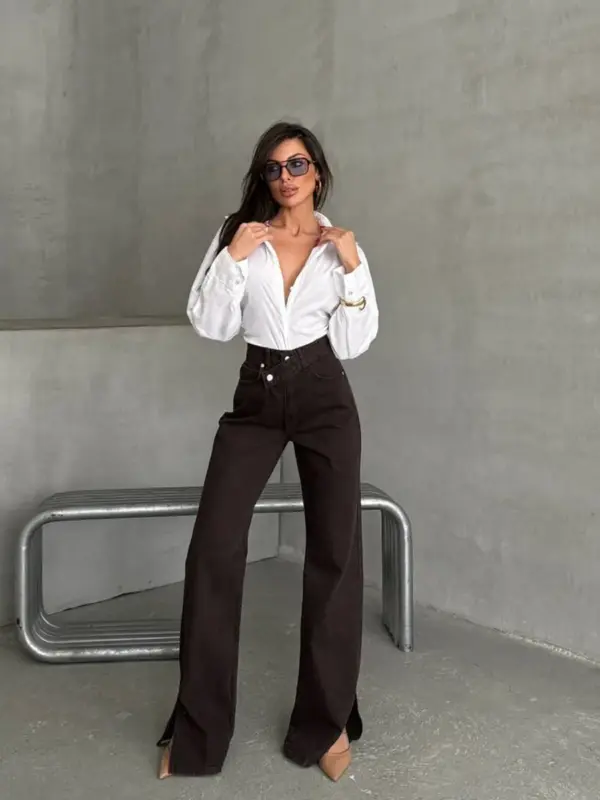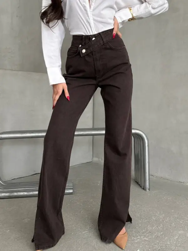 ✔ Poseban detalj: Koso kopčanje, prorez sa strane nogavice.