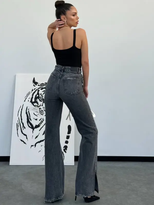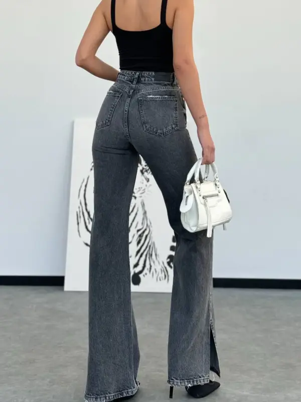 🔹 Kroj: Farmerice visokog struka, bootcut kroj, prorezi na nogavicama