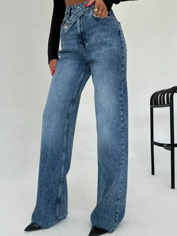 Basic farmerice široka nogavica sa kosim kopčanjem