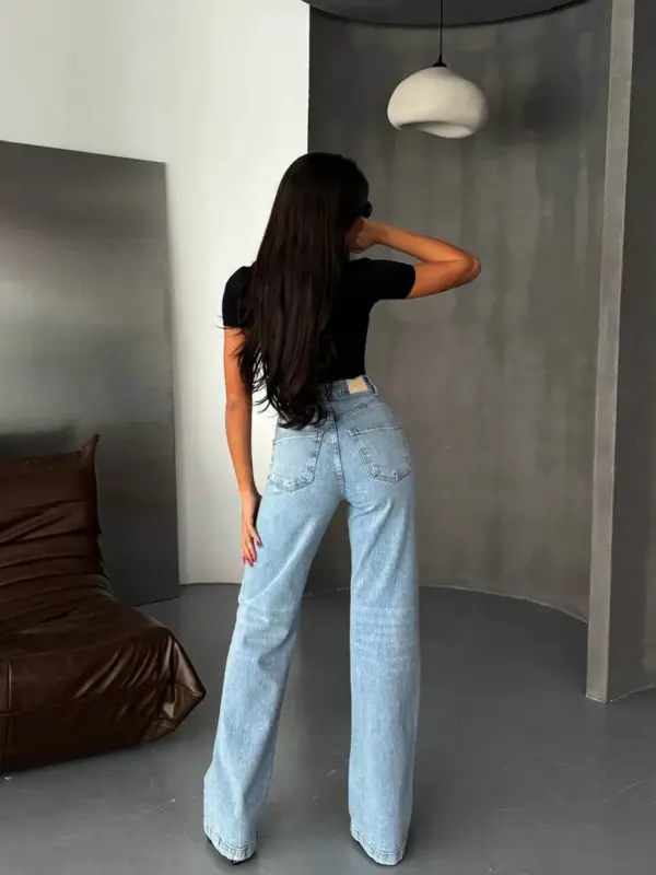 Jednostavne i trendi basic farmerice širokog kroja, savršene za svakodnevne kombinacije. Visoki struk pruža udobnost i ističe figuru, dok detalj sa kosim kopčanjem daje moderan, ležeran izgled. Klasični džepovi sprijeda i pozadi dodaju praktičnost ovom bezvremenskom modelu.