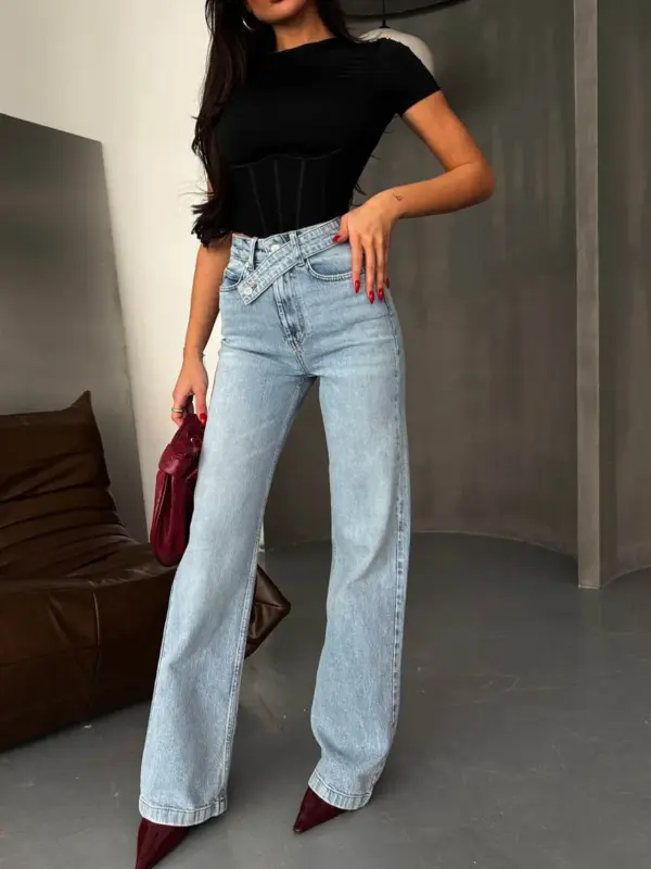 Basic farmerice široka nogavica sa kosim kopčanjem