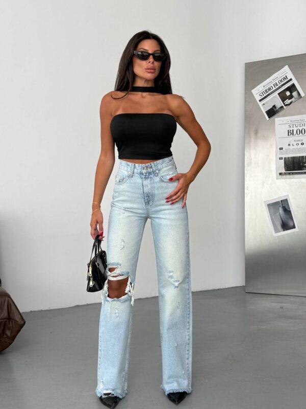 Ove farmerice sa uskim nogavicama koje se završavaju prorezom pri dnu donose savršen spoj udobnosti i stila! Ističu se zanimljivim detaljem rajfešlusa i dugmadi, dodajući unikatan pečat klasičnom kroju.