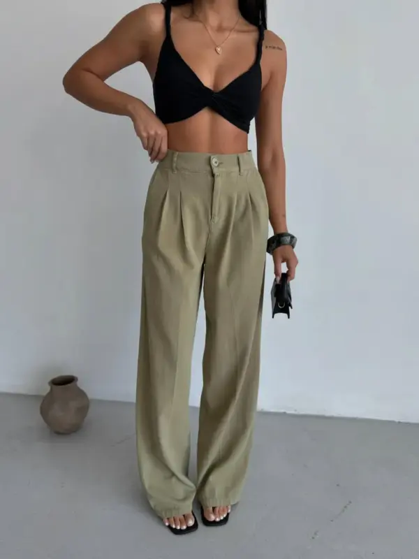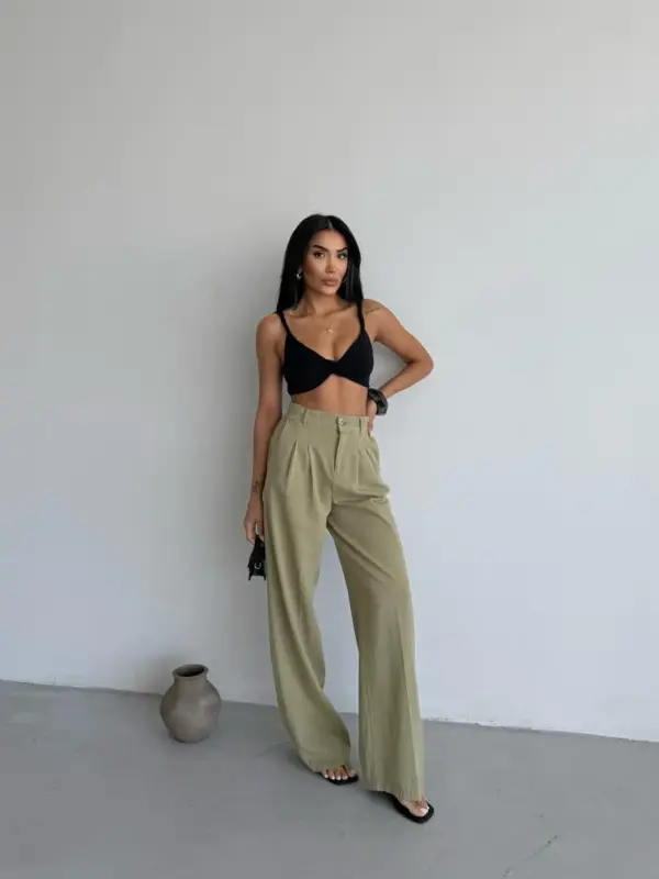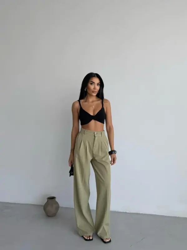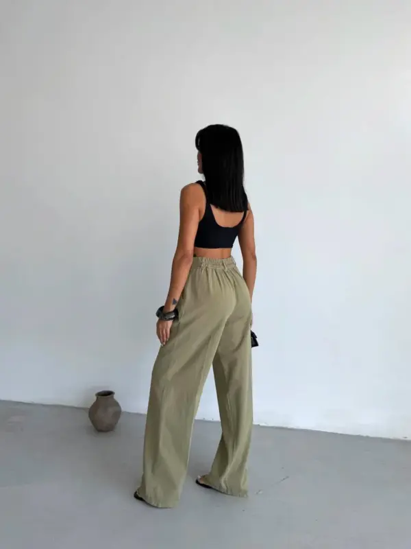 Hlače imaju lepršavi kroj s širokim nogavicama koji pruža slobodu pokreta i unosi dozu elegancije. Lako se kombiniraju s basic topovima, crop topovima ili košuljama. Idealne su za ljetne dane, putovanja ili opuštene gradske šetnje.